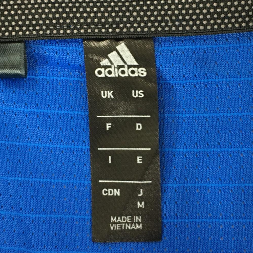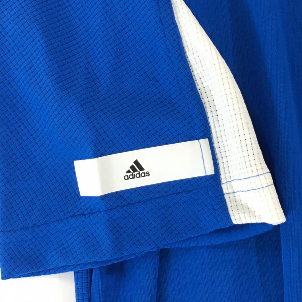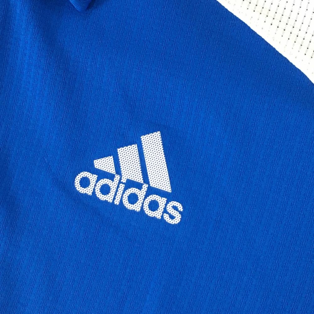 【超美品】アディダス 半袖ポロシャツ ブルー×白 背面メッシュ調 サイド3ライン HEATRDY メンズ M ゴルフウェア adidas