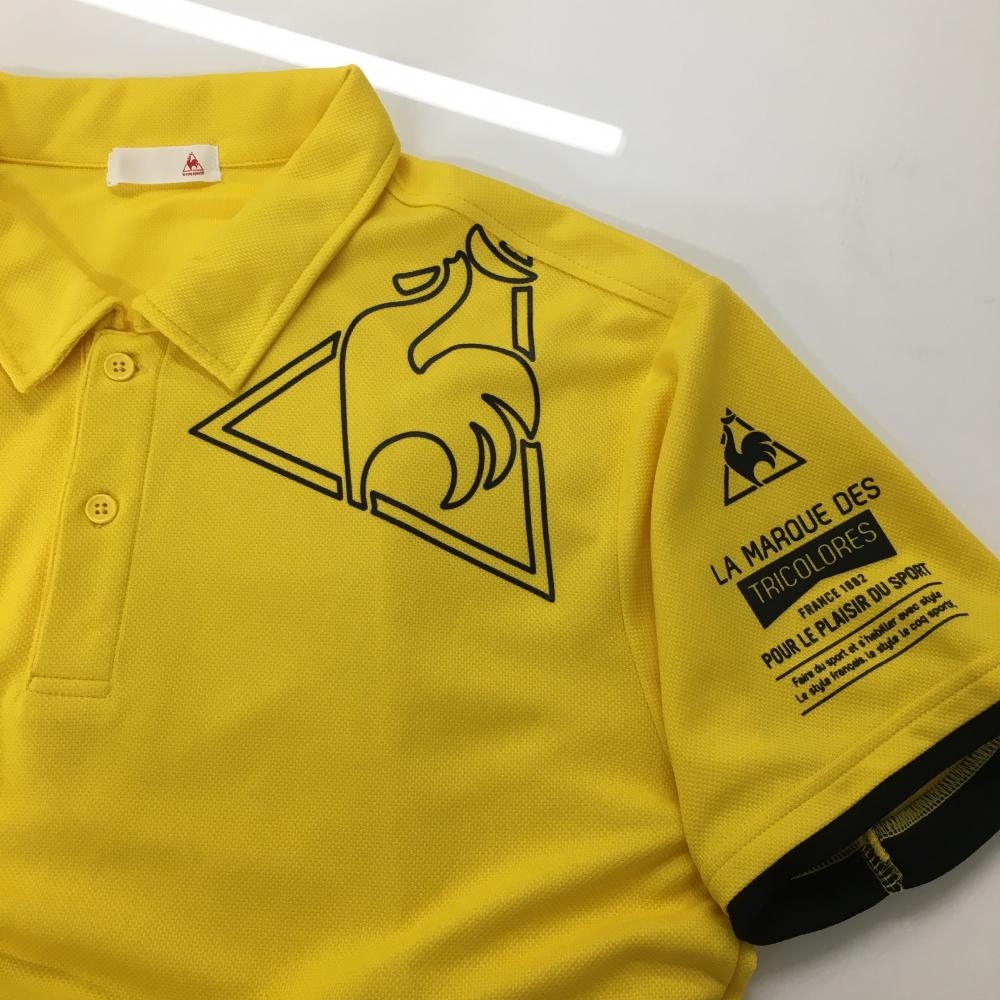 ルコック 半袖ポロシャツ イエロー×黒 ロゴプリント メンズ O(XL) ゴルフウェア le coq sportif