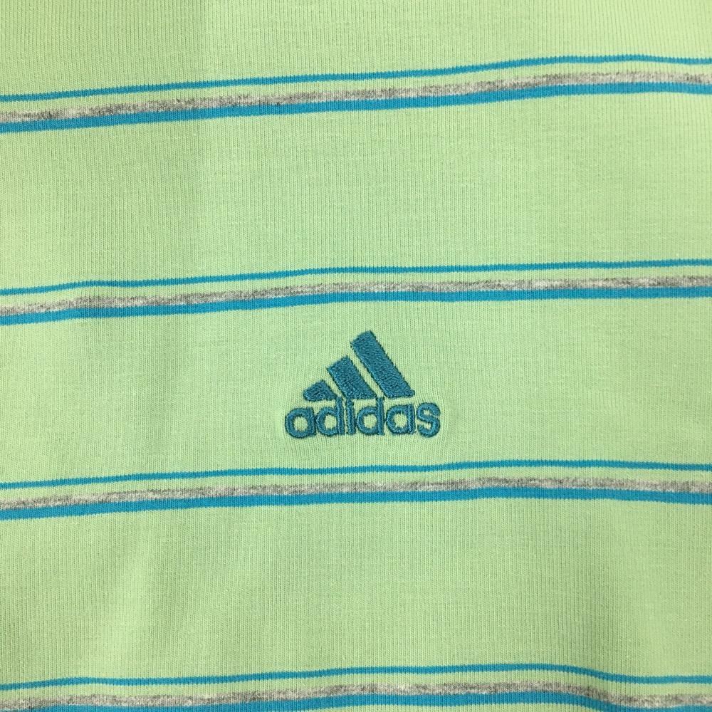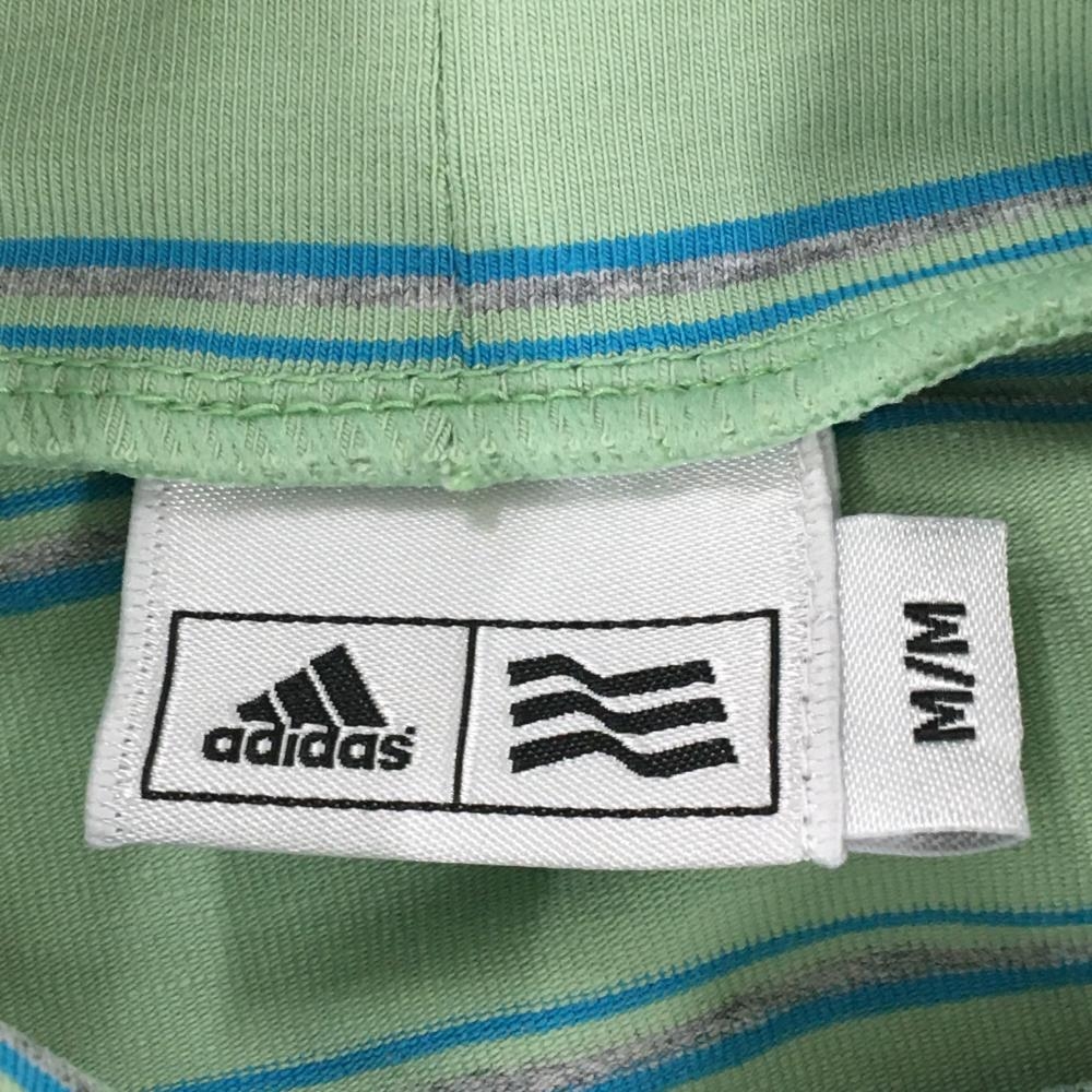 【超美品】アディダス 長袖タートルネックシャツ ライトグリーン×ブルー ボーダー ストレッチ レディース M/M ゴルフウェア adidas