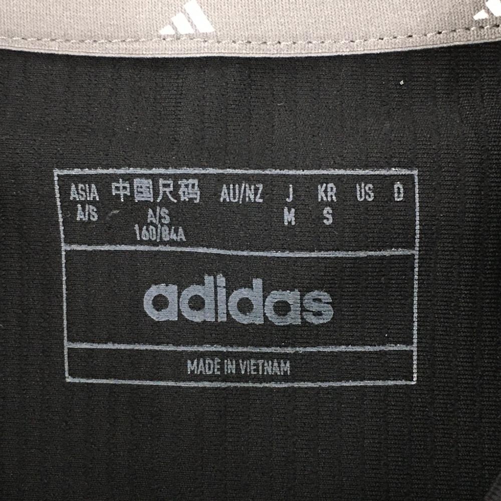 【超美品】アディダス 半袖ハイネックシャツ 黒×グレー ストライプ織生地 肩3ライン ストレッチ レディース M ゴルフウェア adidas