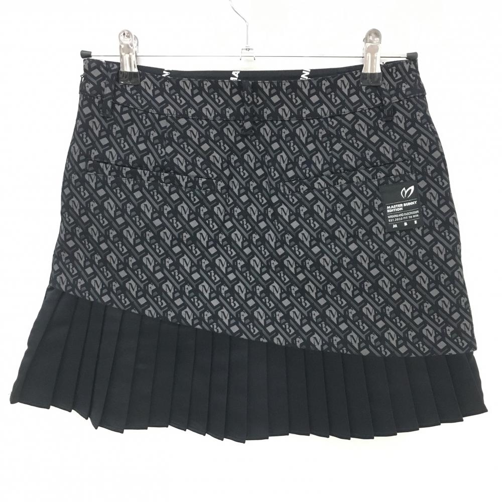 【超美品】マスターバニー スカート 黒×グレー 斜めロゴ総柄 ストレッチ レディース 0(S) ゴルフウェア MASTER BUNNY EDITION