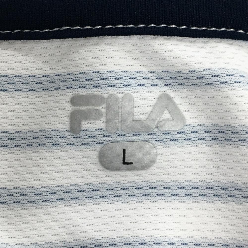 フィラゴルフ 半袖ワンピース 白×ネイビー ボーダー Vネック 胸ロゴ レディース L ゴルフウェア FILA GOLF