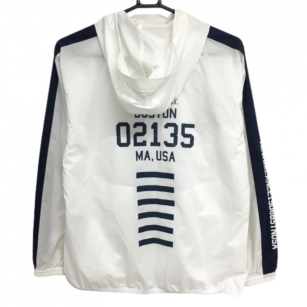 【美品】ニューバランスゴルフ ジップパーカー 白×ネイビー 後ろビッグプリント ダブルジップ レディース 1(M) ゴルフウェア New Balance