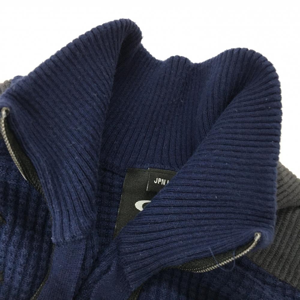 オークリー ハイネックセーター ネイビー×グレー ハーフジップ コットン・ウール混 レディース L ゴルフウェア Oakley