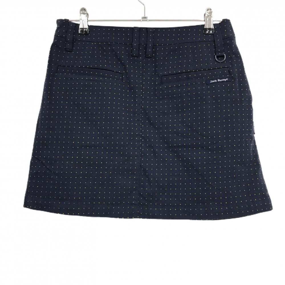 【超美品】ジャックバニー スカート ネイビー×イエロー ピンドット バックロゴ レディース 2(L) ゴルフウェア Jack Bunny