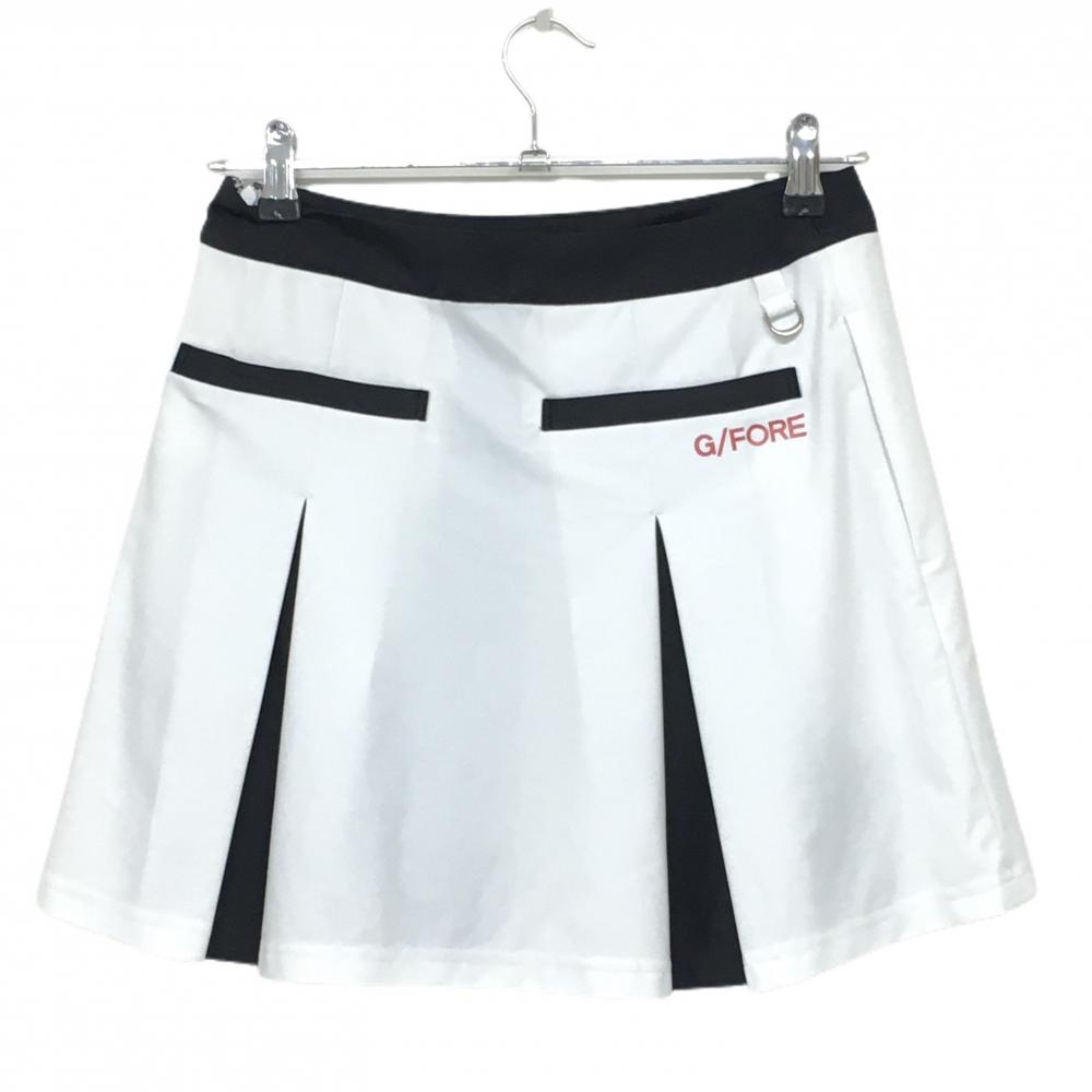 【超美品】ジーフォア スカート 白×黒 ボックスプリーツ ストレッチ インナーパンツ付 レディース 36(S) ゴルフウェア G/FORE