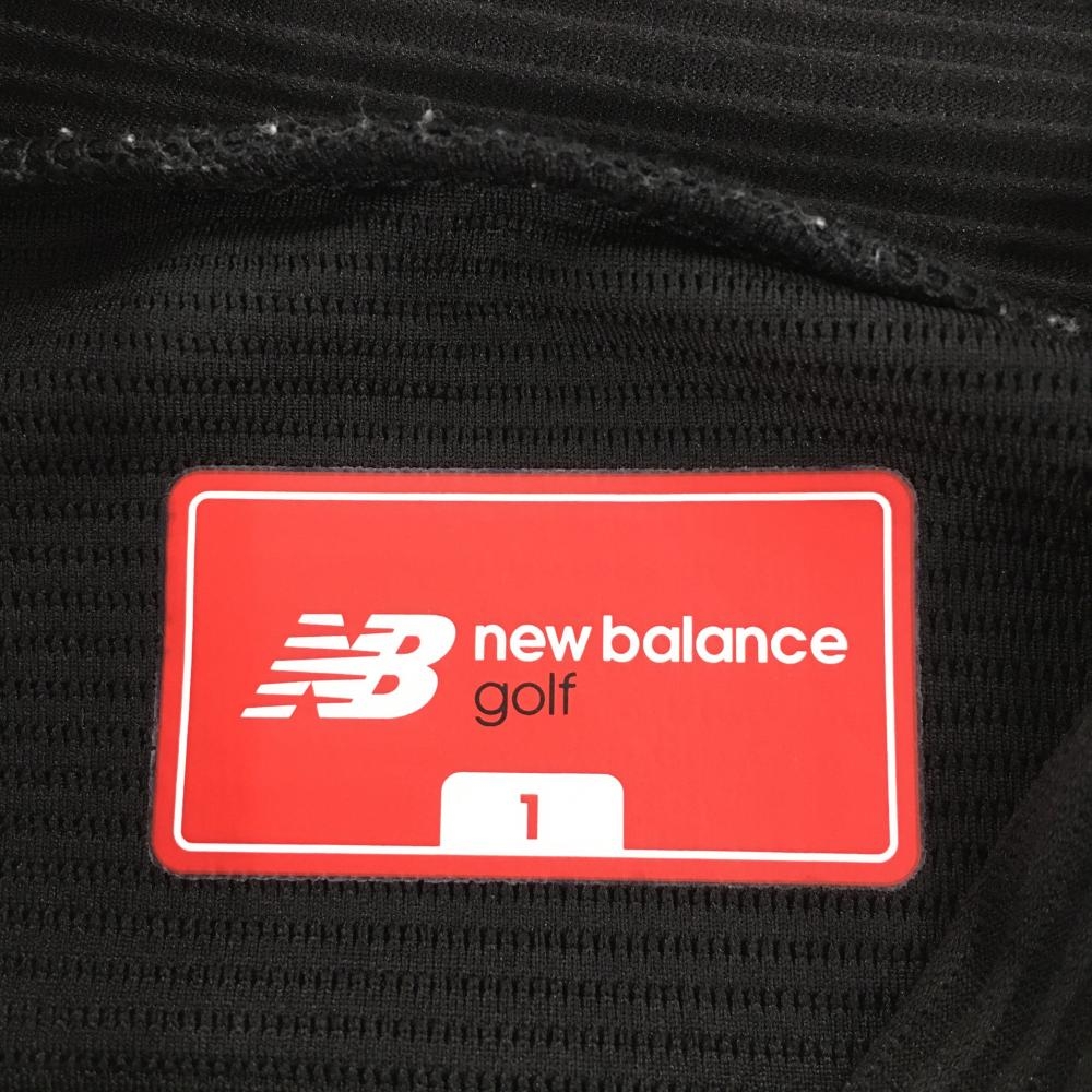 【超美品】ニューバランスゴルフ 半袖ハイネックシャツ 黒 胸上細ボーダー織生地 ロゴ白 レディース 1(M) ゴルフウェア New Balance