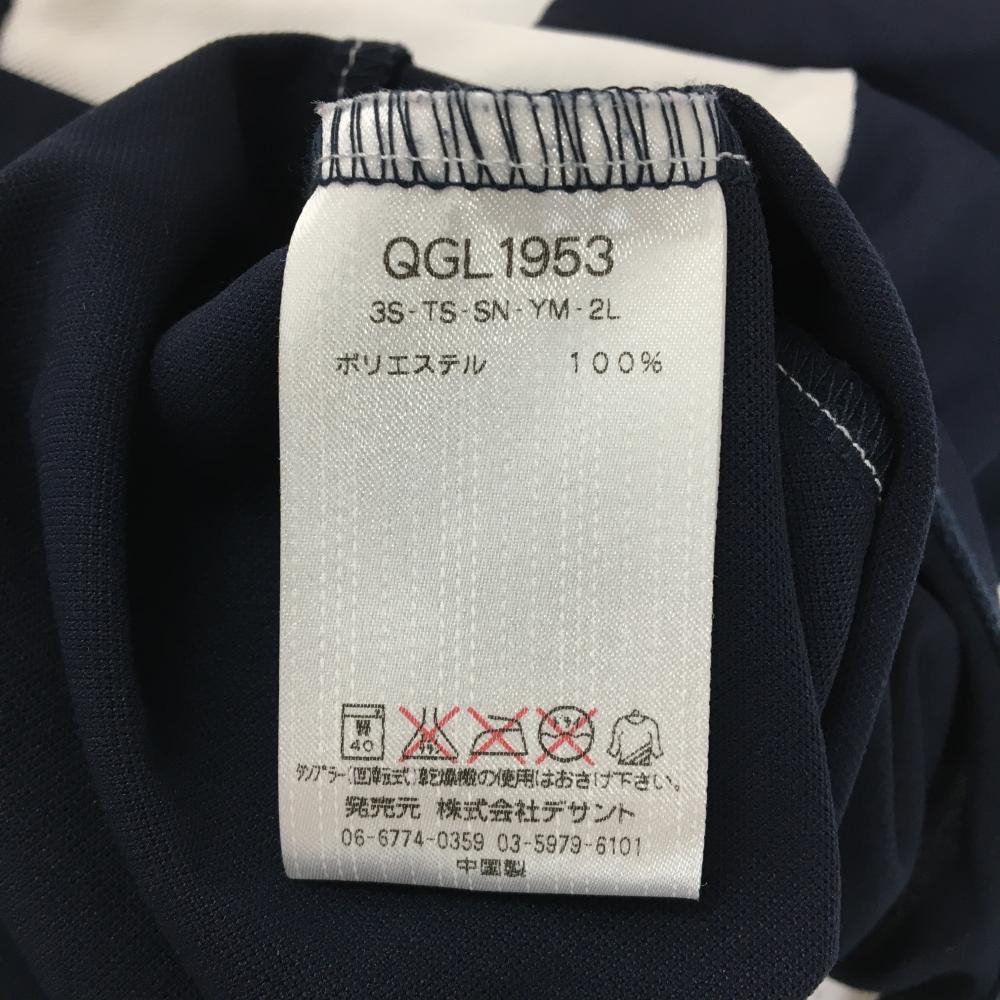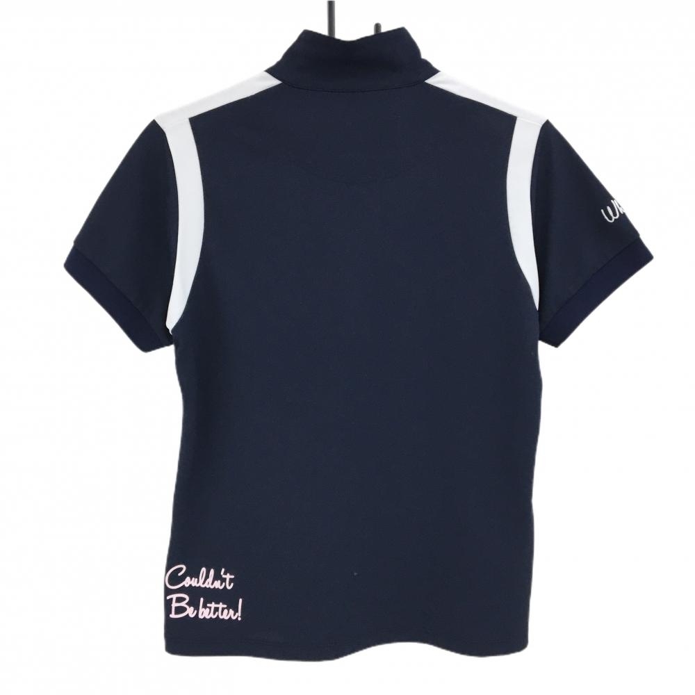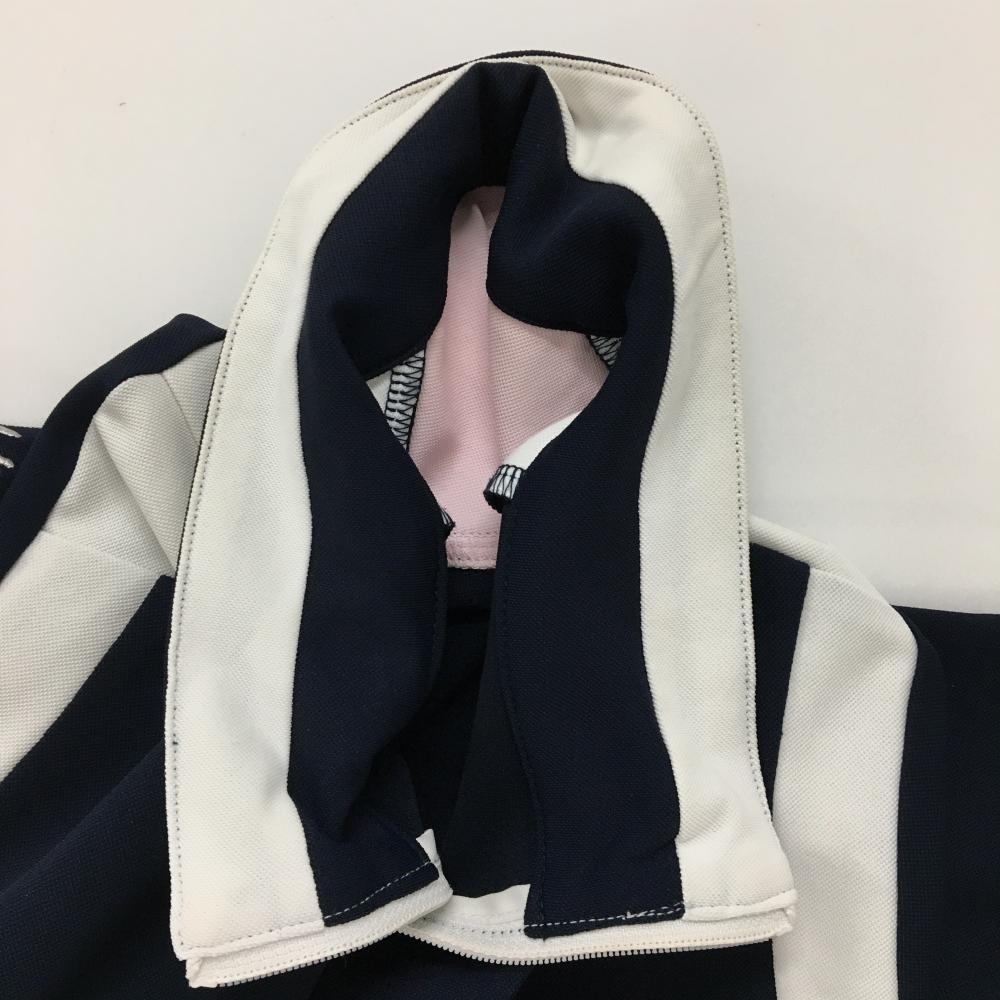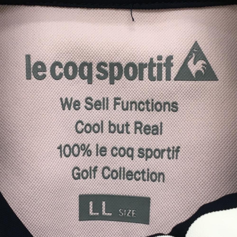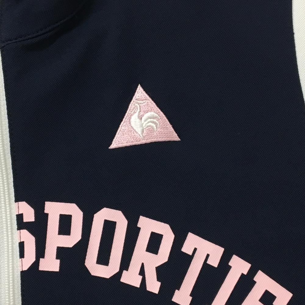 【美品】ルコックゴルフ 半袖ハイネックシャツ ネイビー×白 ハーフジップ ロゴピンク レディース LL ゴルフウェア le coq sportif
