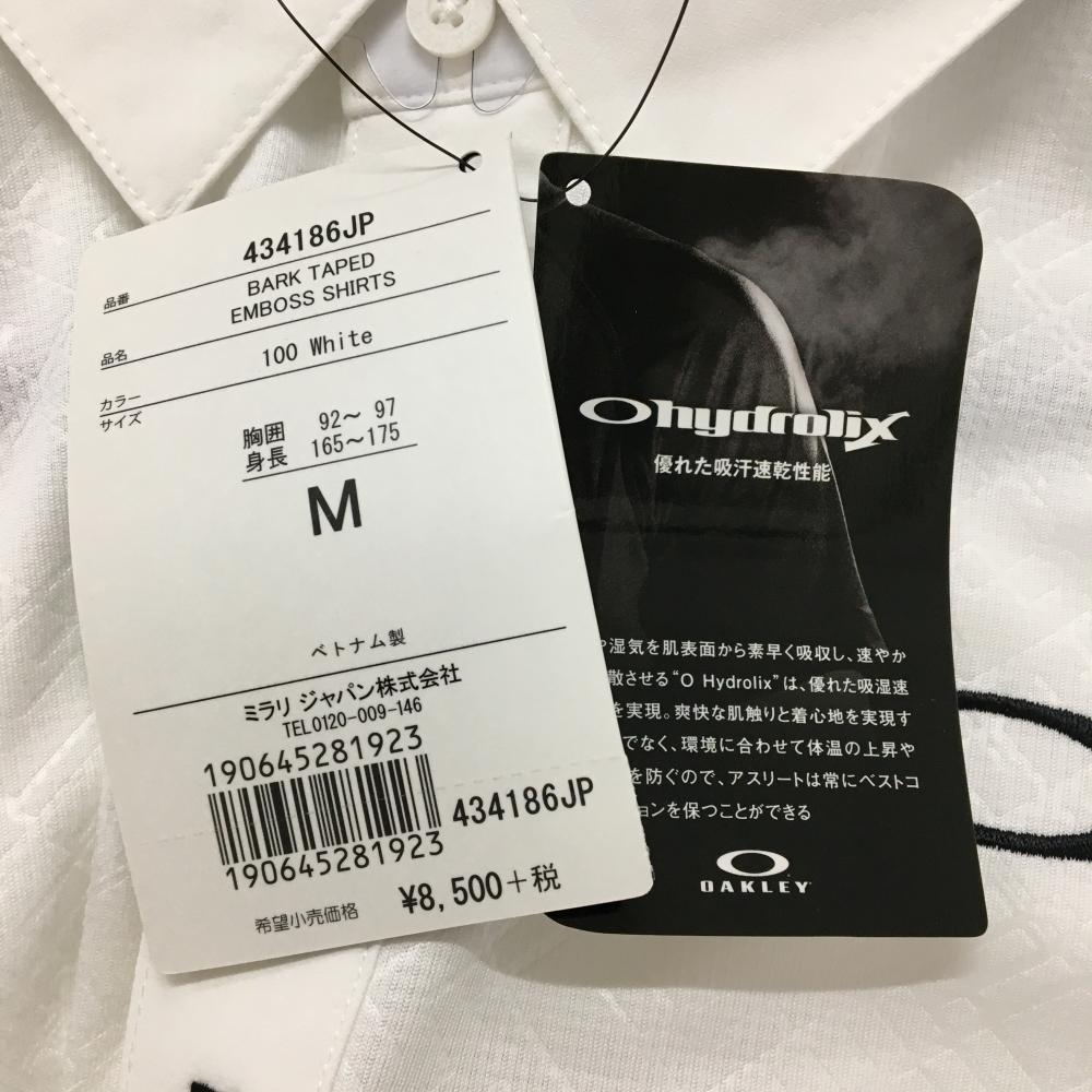【新品】オークリー 半袖ポロシャツ 白 総柄地模様 一部メッシュ 吸汗速乾 メンズ M ゴルフウェア Oakley