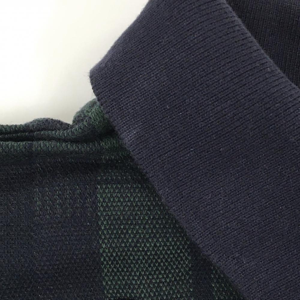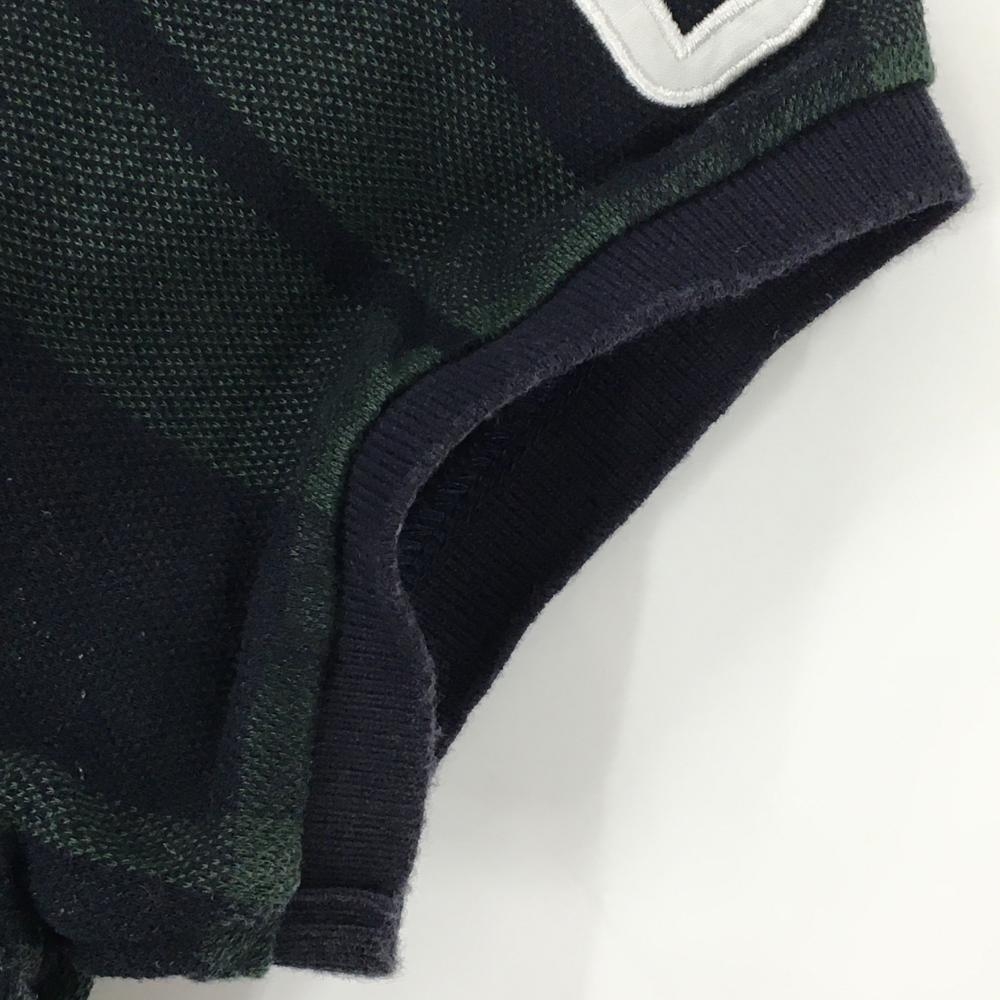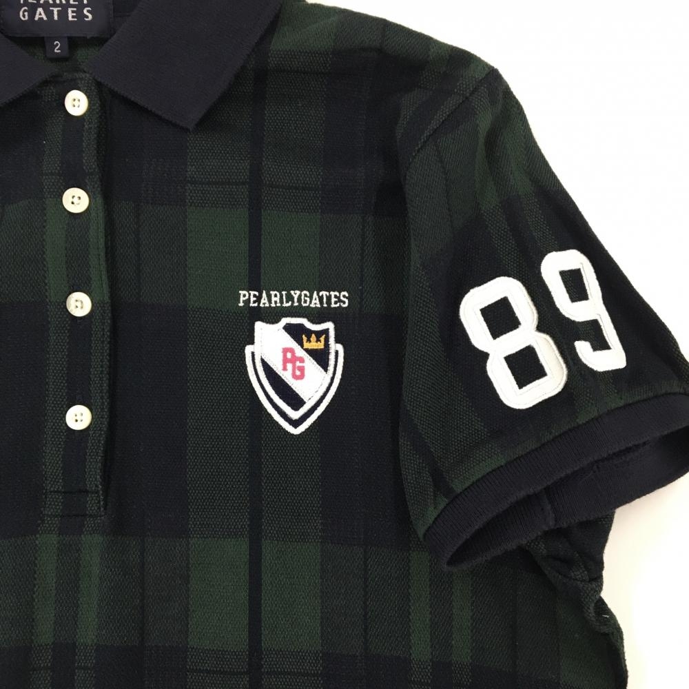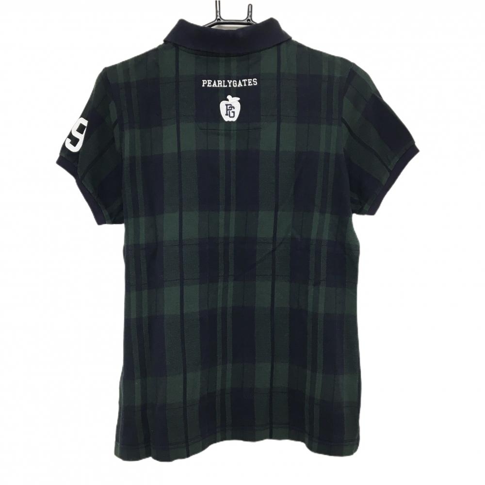 パーリーゲイツ 半袖ポロシャツ ダークネイビー×ダークグリーン チェック ロゴワッペン レディース 2(L) ゴルフウェア PEARLY GATES