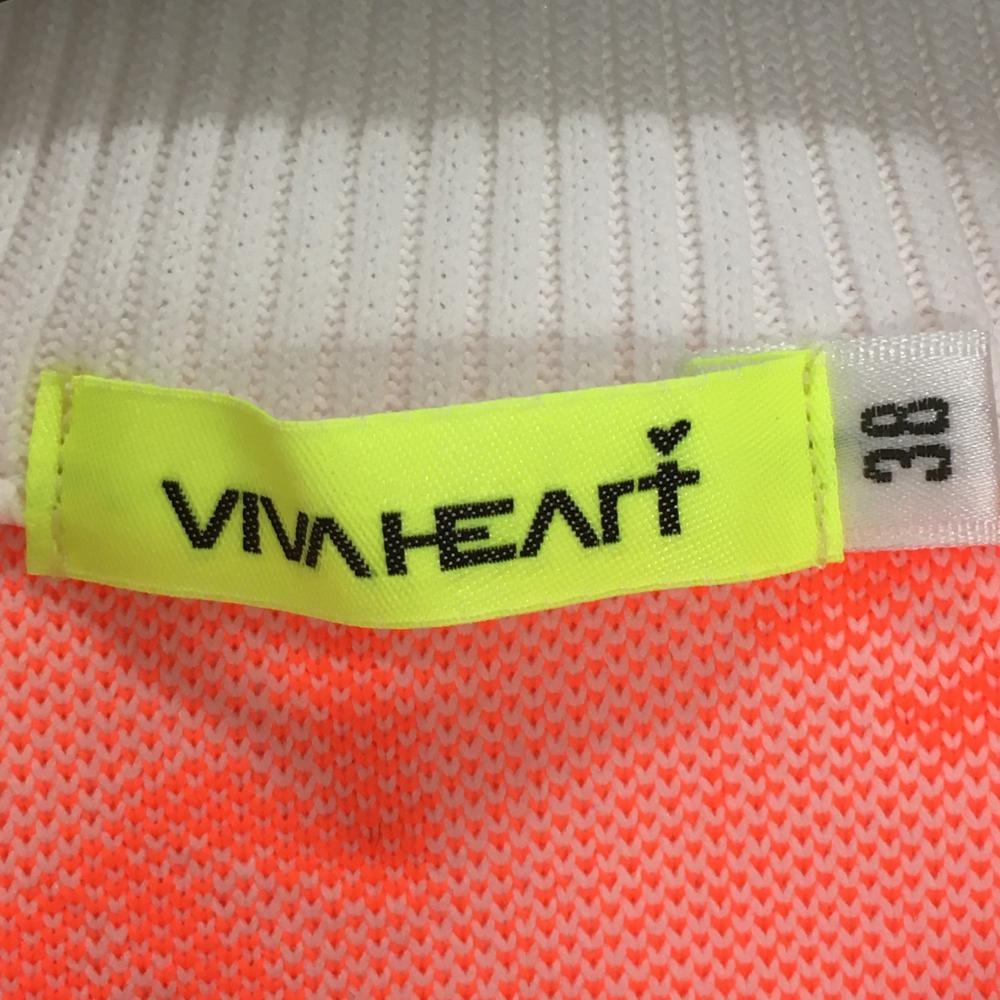 【超美品】ビバハート ニットベスト 白×オレンジ ロゴ総柄 レディース 38(S) ゴルフウェア VIVA HEART