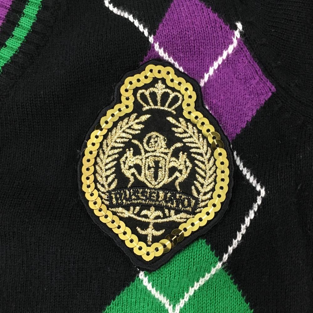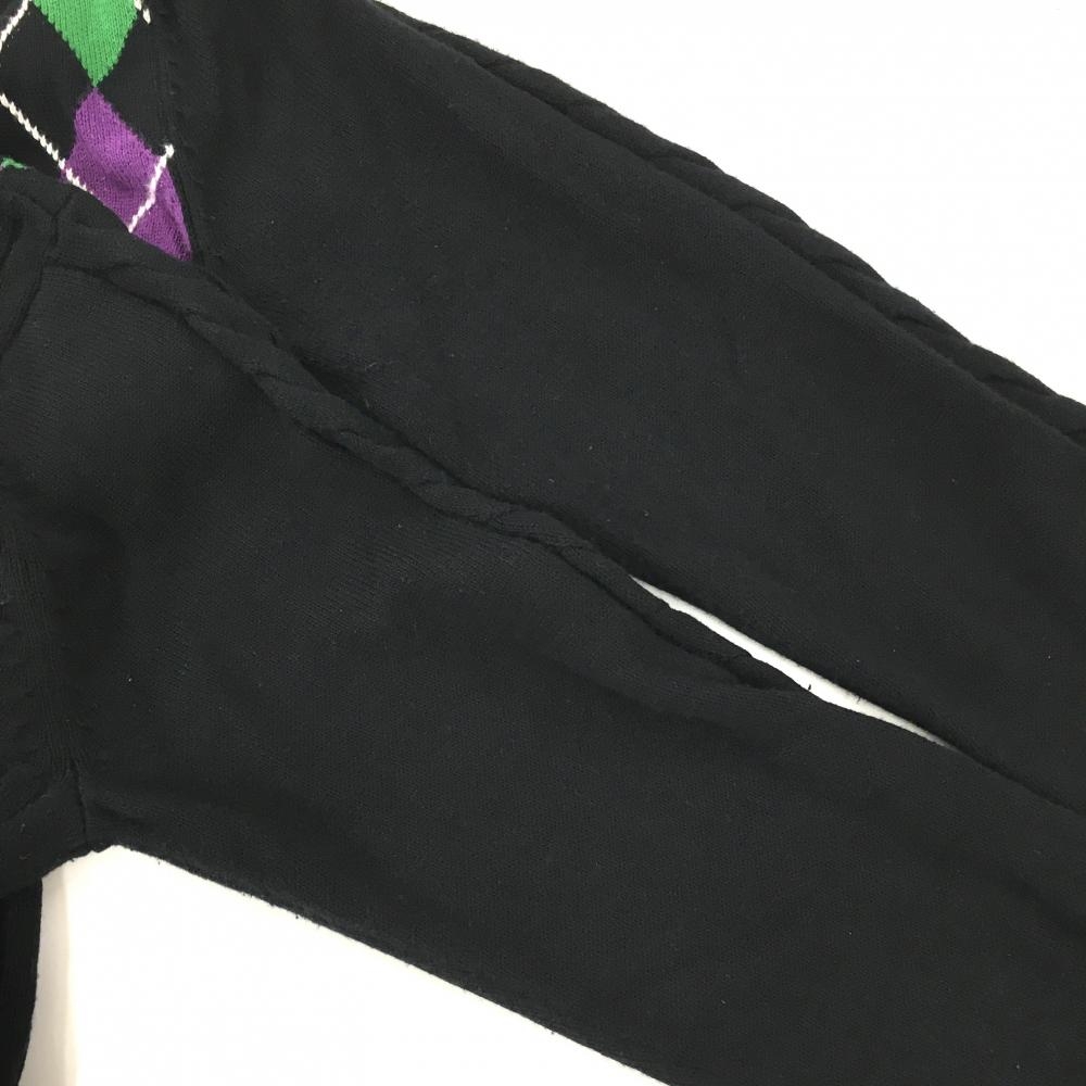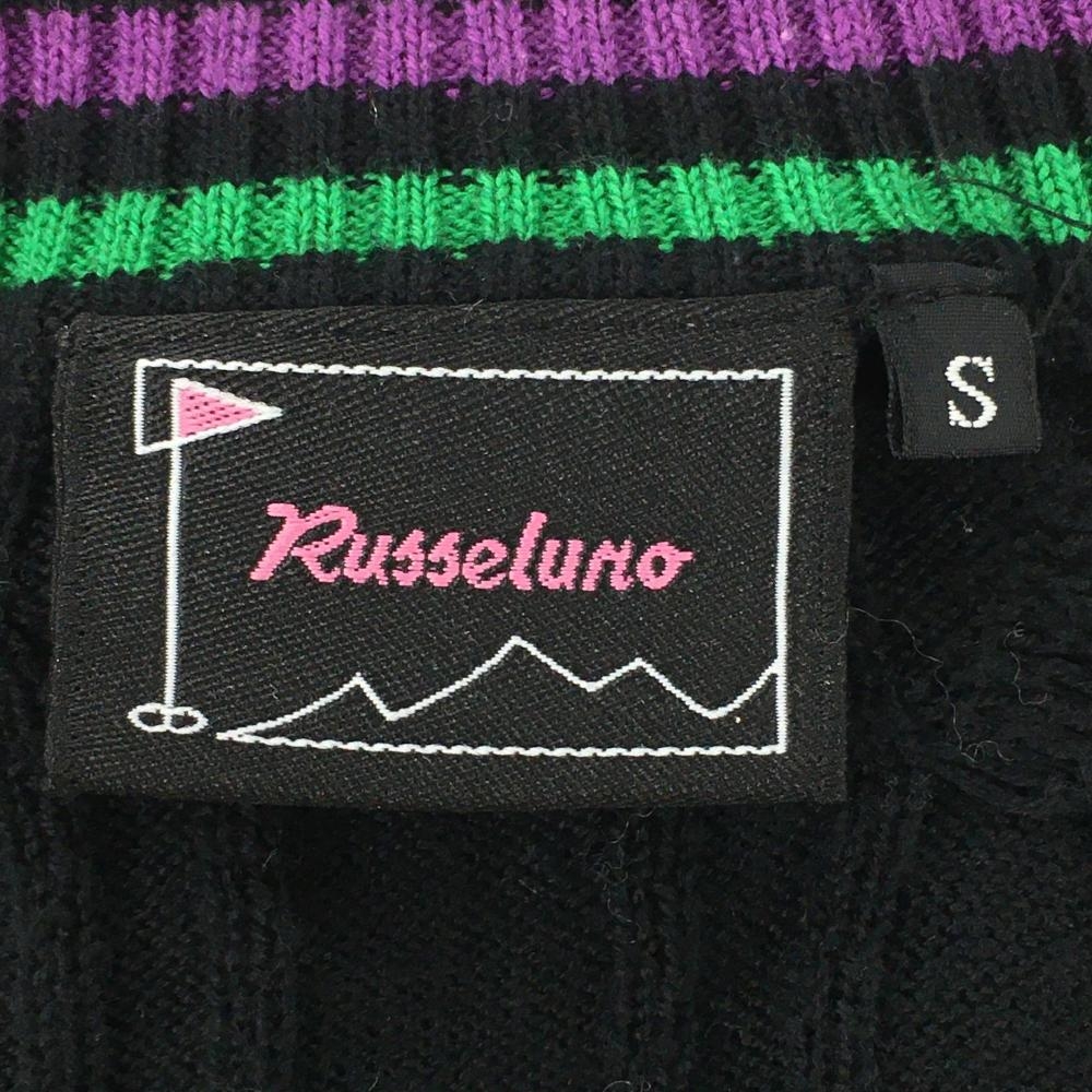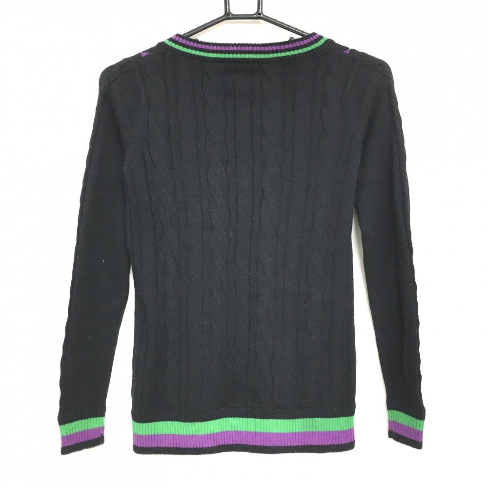 ラッセルノ セーター 黒×グリーン×パープル Vネック ケーブル編み ニット レディース S ゴルフウェア RUSSELUNO