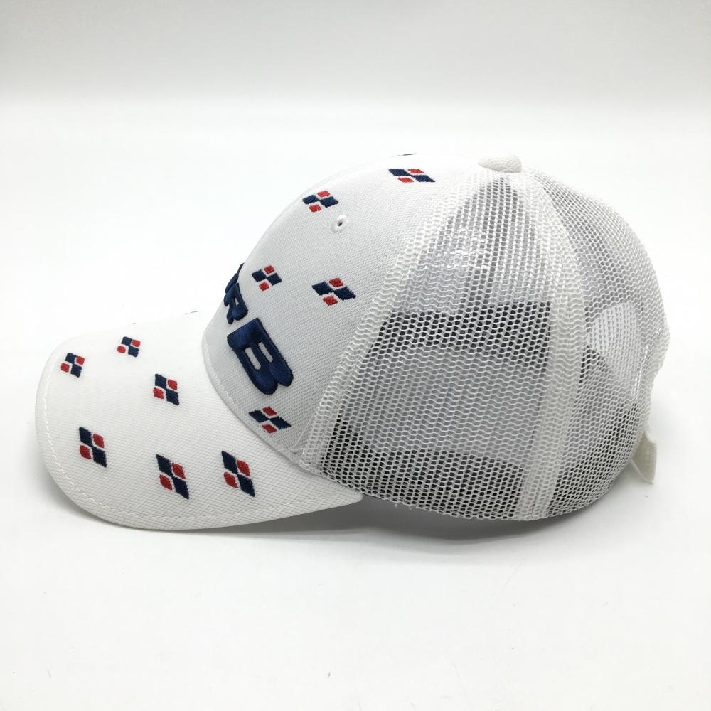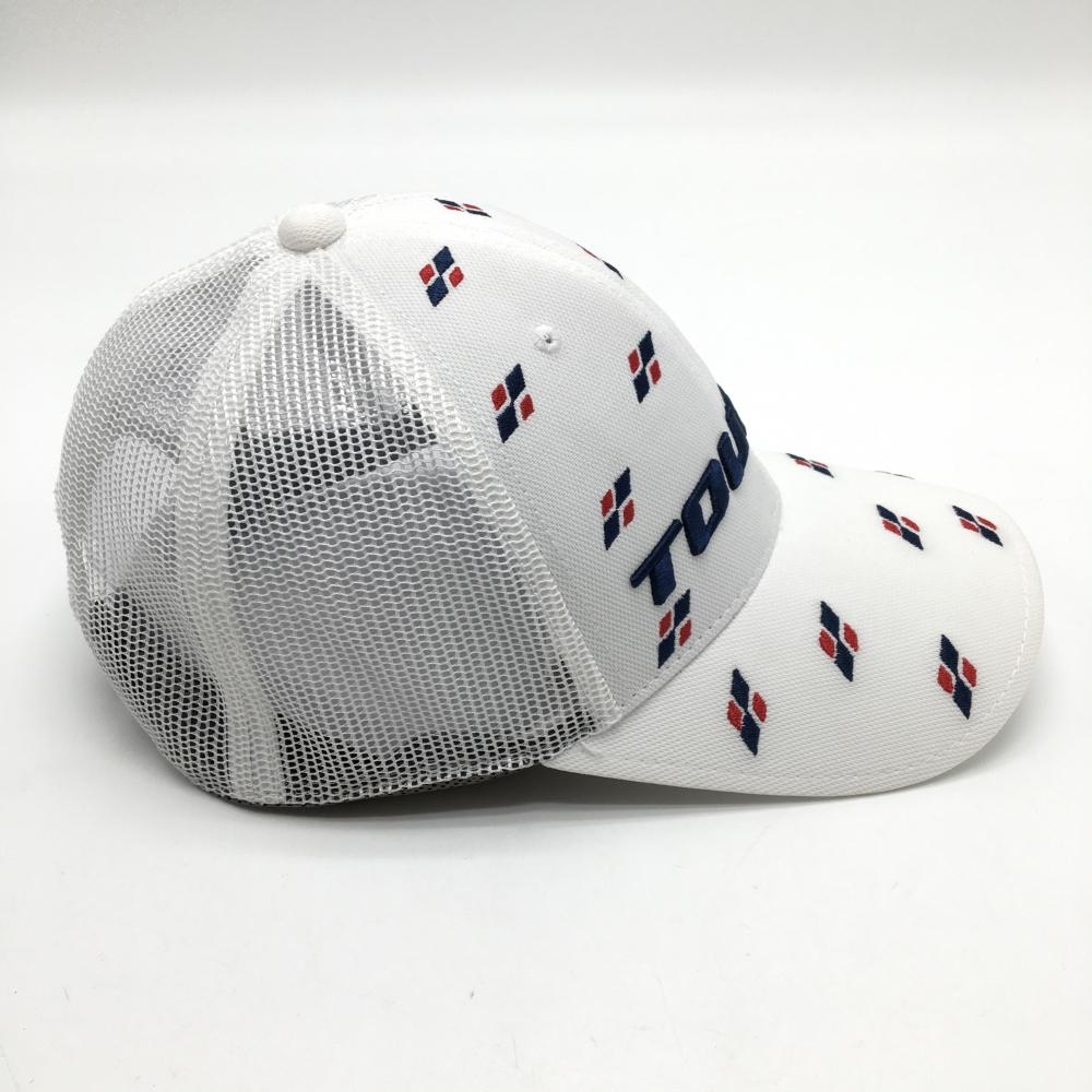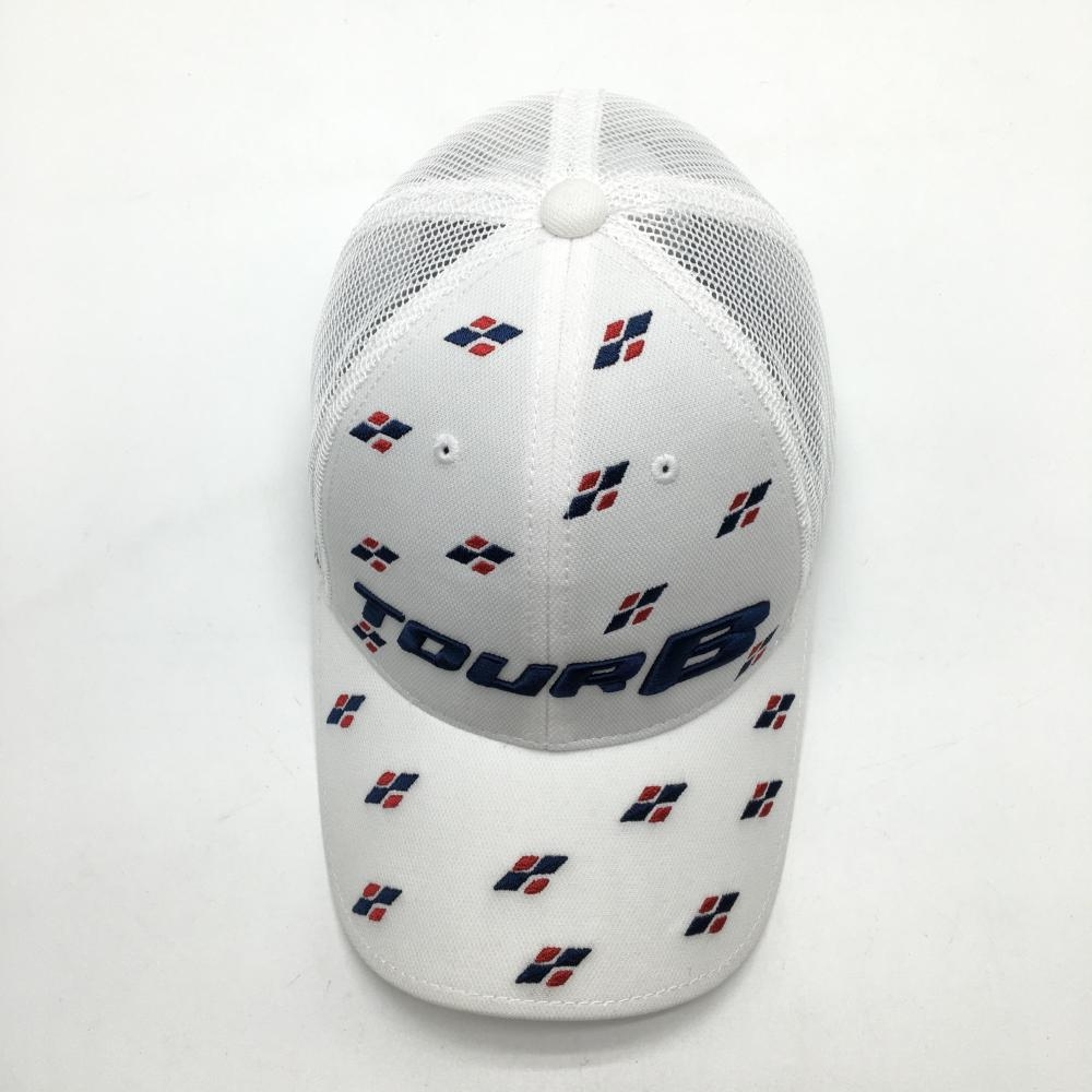 【超美品】ブリヂストンTOURB メッシュキャップ 白×ネイビー 一部総柄 フリーサイズ(約56-59cm) ゴルフウェア Bridgestone