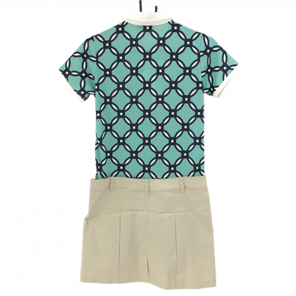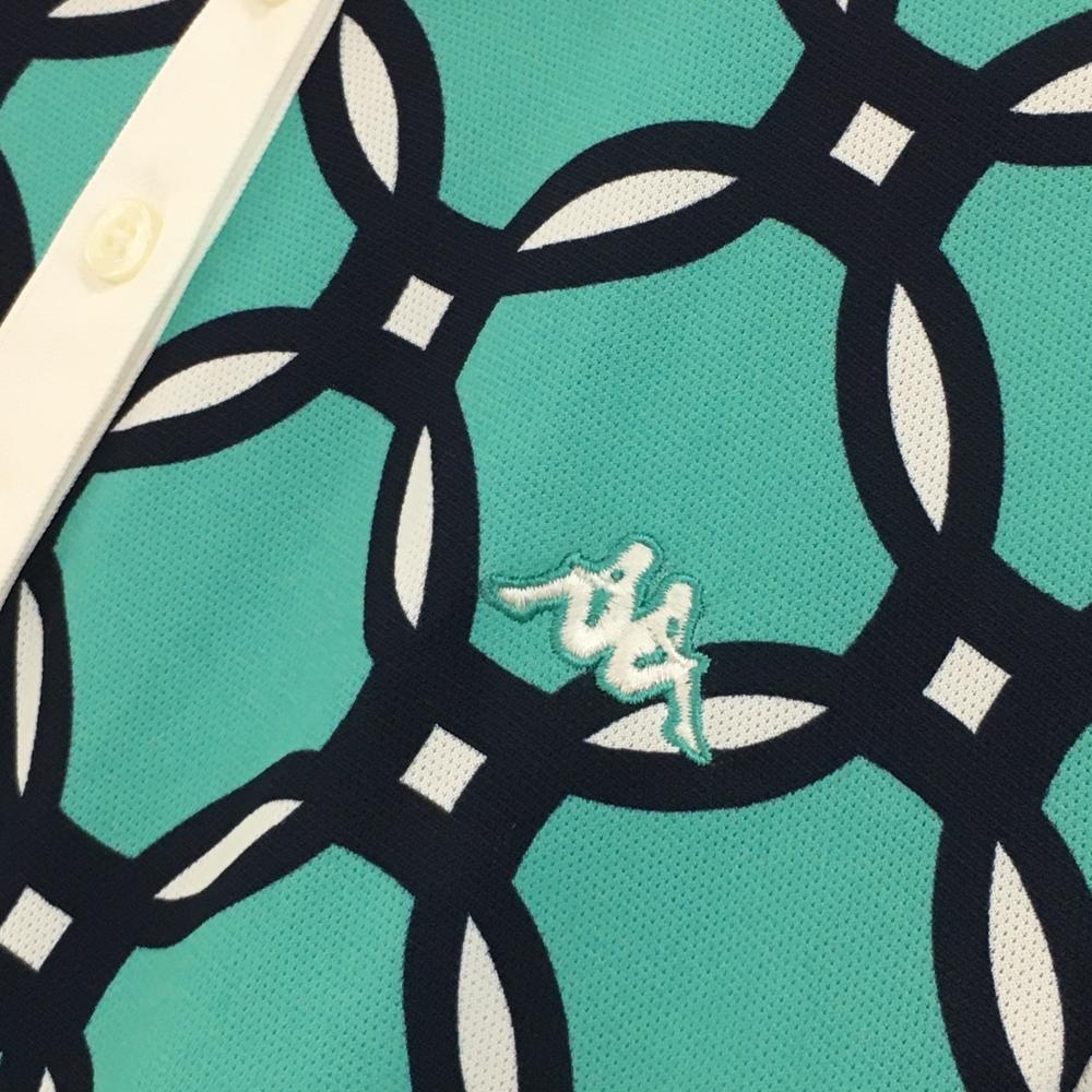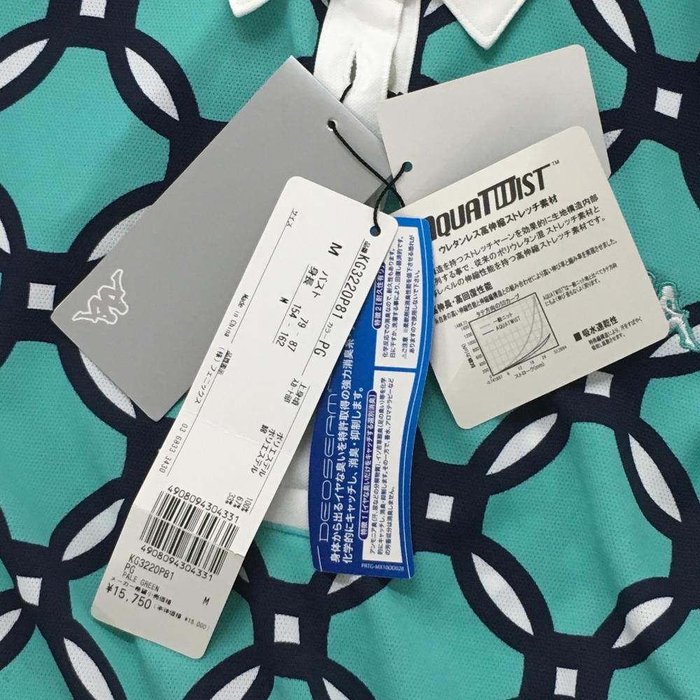 【新品】カッパ 半袖ポロワンピース グリーン×ベージュ 上部総柄 切替 吸水速乾 UVカット レディース M ゴルフウェア Kappa