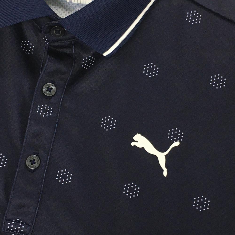 【超美品】プーマ 半袖ポロシャツ ネイビー×白 総柄 ロゴ メンズ L ゴルフウェア PUMA