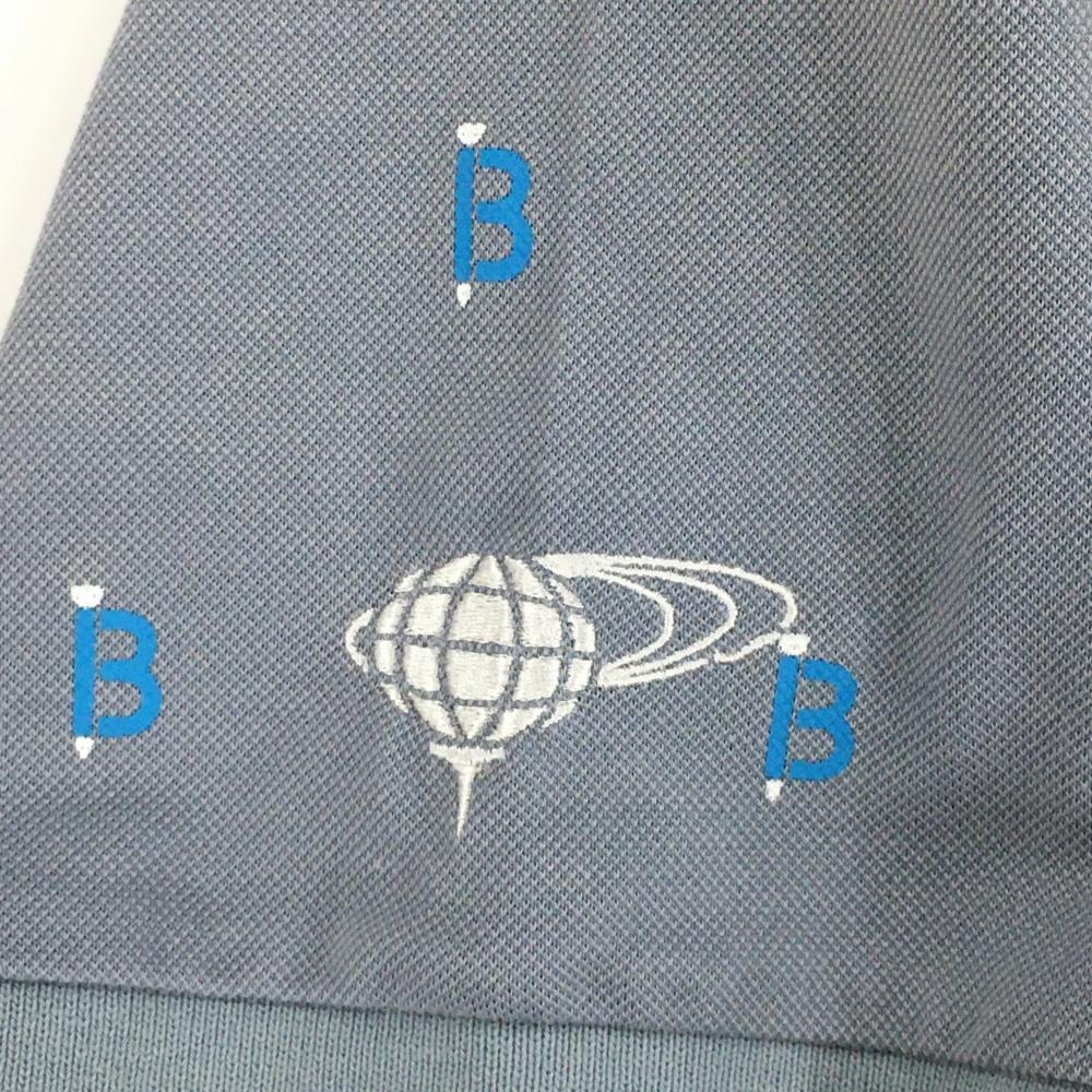 ビームスゴルフ 半袖ポロシャツ グレー×ブルー ロゴ総柄 メンズ M ゴルフウェア BEAMS GOLF