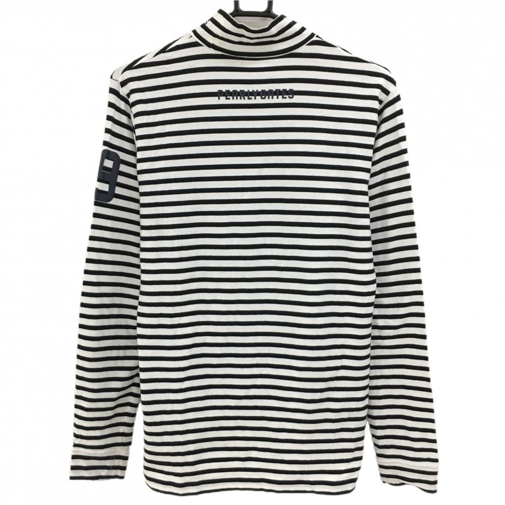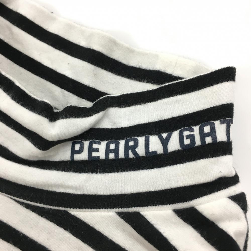 【美品】パーリーゲイツ 長袖ハイネックシャツ 白×黒 ボーダー コットン混 メンズ 6(XL) ゴルフウェア PEARLY GATES