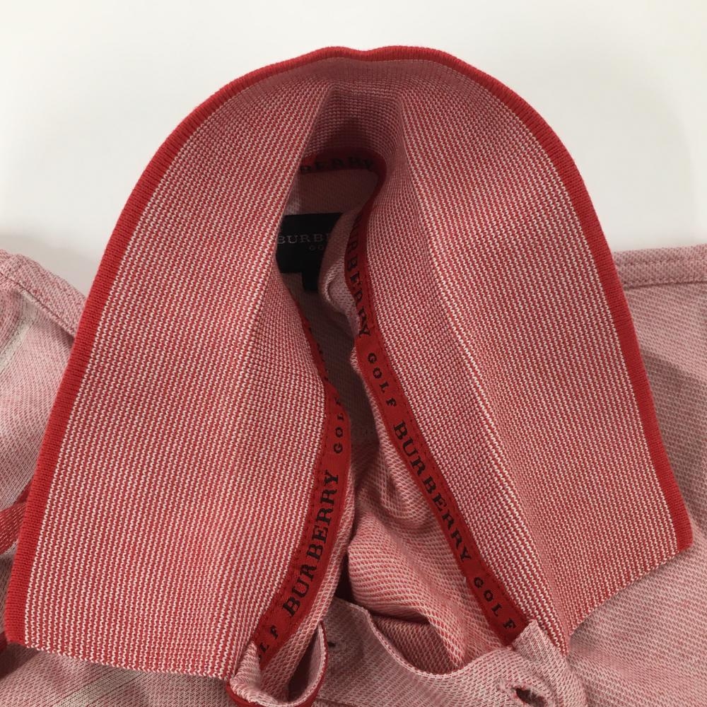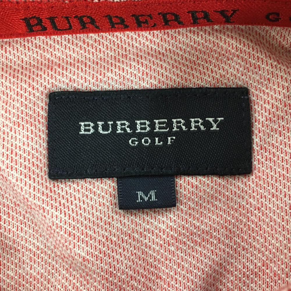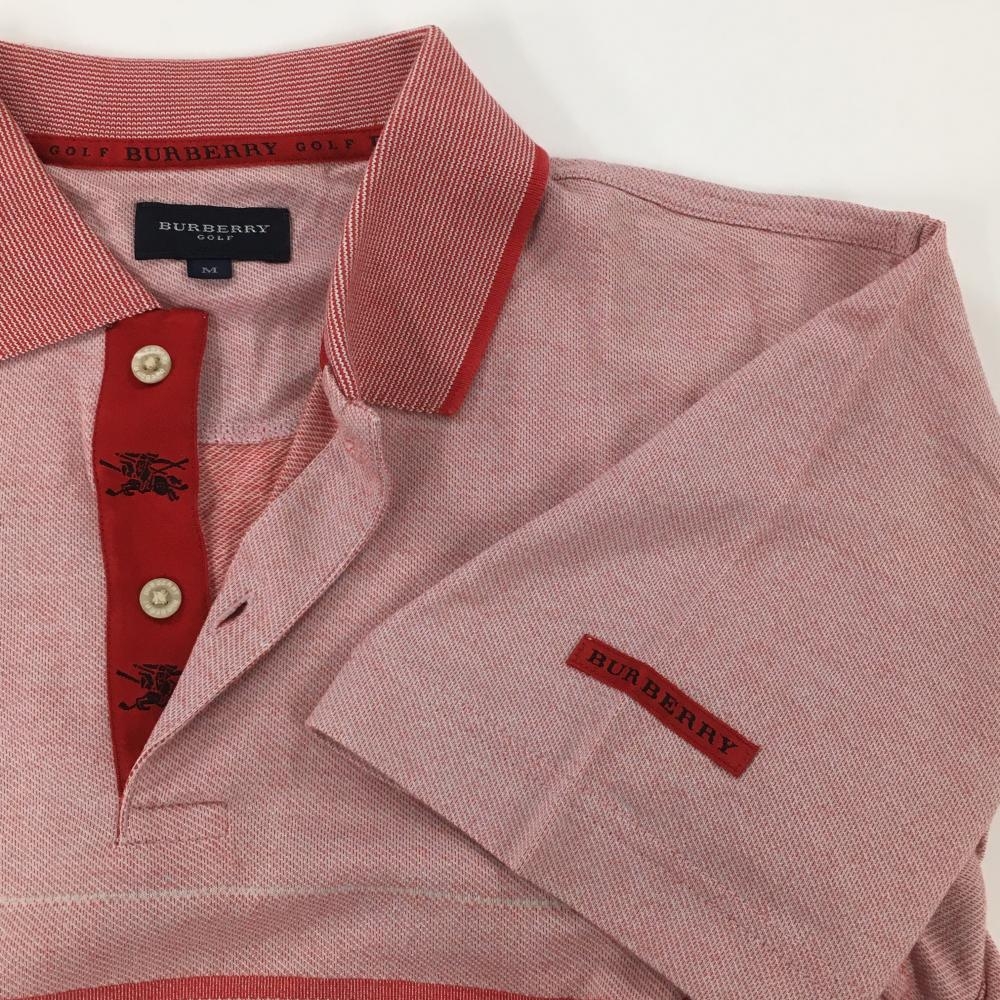 【美品】バーバリーゴルフ 半袖ポロシャツ レッド×白 3ライン 袖ロゴ メンズ M ゴルフウェア BURBERRY GOLF