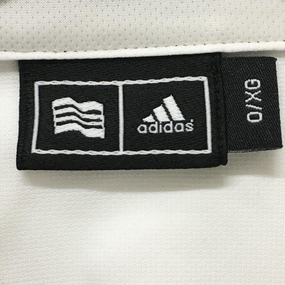 【超美品】アディダス 半袖ハイネックシャツ 白×黒 ロゴ赤 ハーフジップ 斜め3ライン メンズ O/XG ゴルフウェア adidas