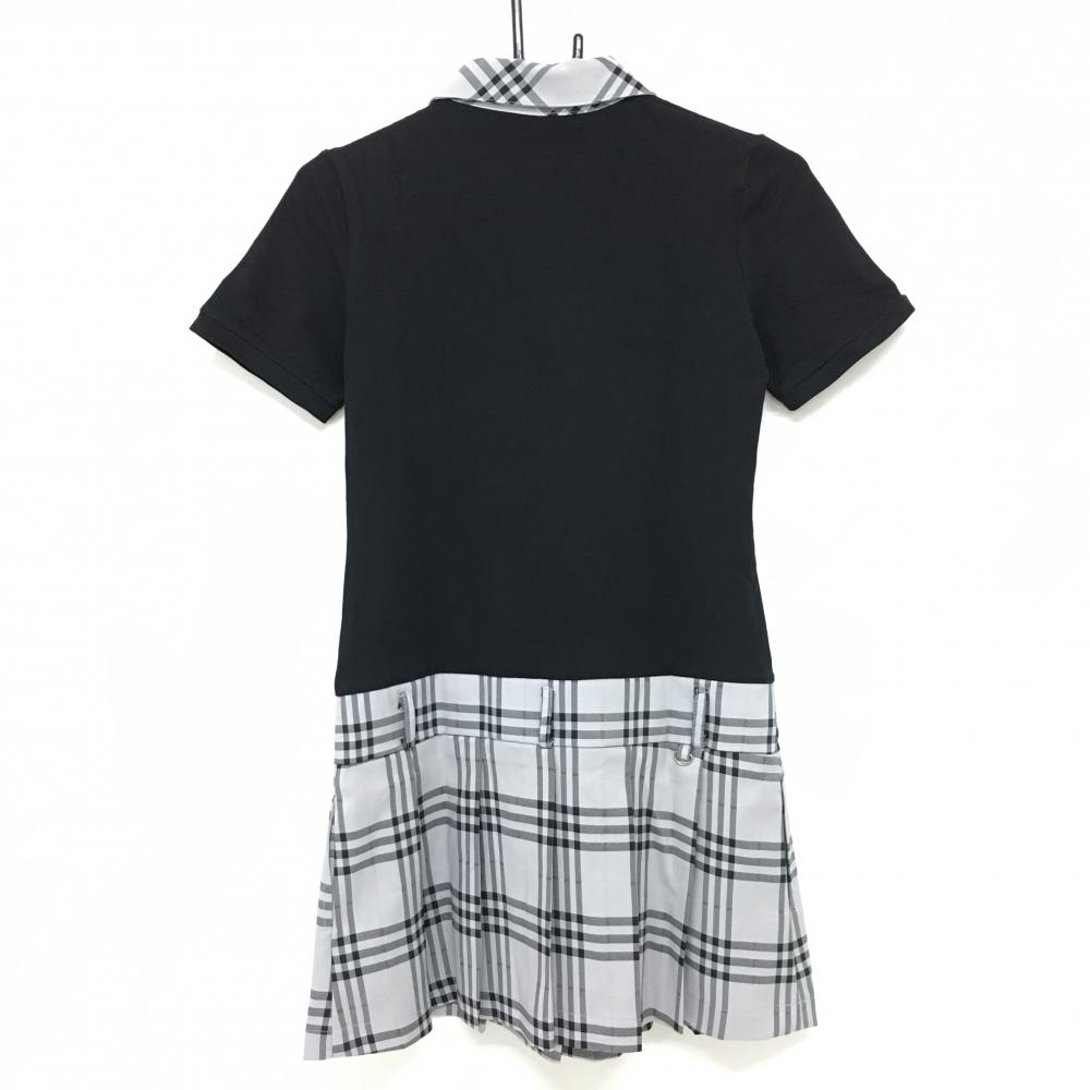 キスオンザグリーン 半袖ポロワンピース 黒×グレー 襟・スカートチェック柄 レディース ゴルフウェア kiss on the green