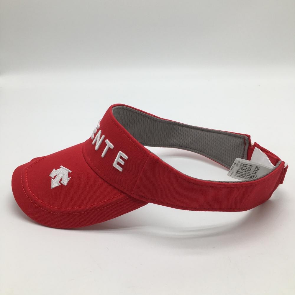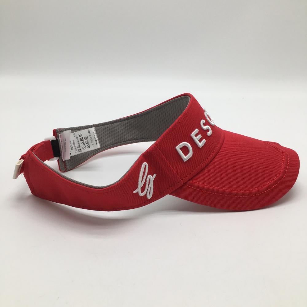 【美品】デサントゴルフ サンバイザー レッド×白 立体ロゴ刺しゅう 中田英寿 F(55cm-57cm) ゴルフウェア DESCENTE