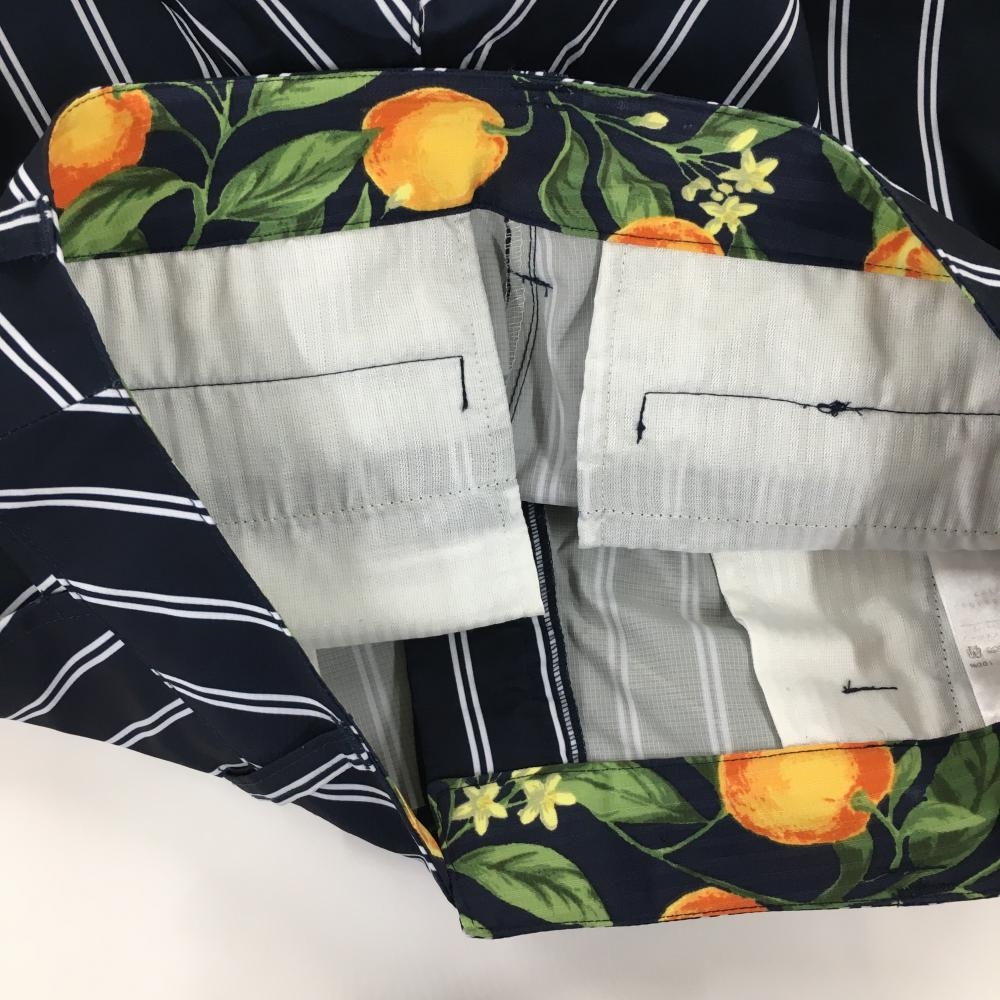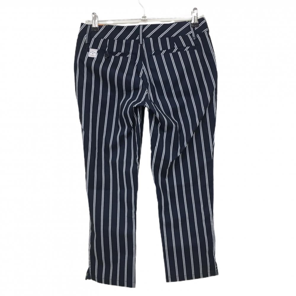 【美品】キャロウェイ パンツ ダークネイビー×白 ストライプ ウエスト裏オレンジ柄 レディース M ゴルフウェア Callaway