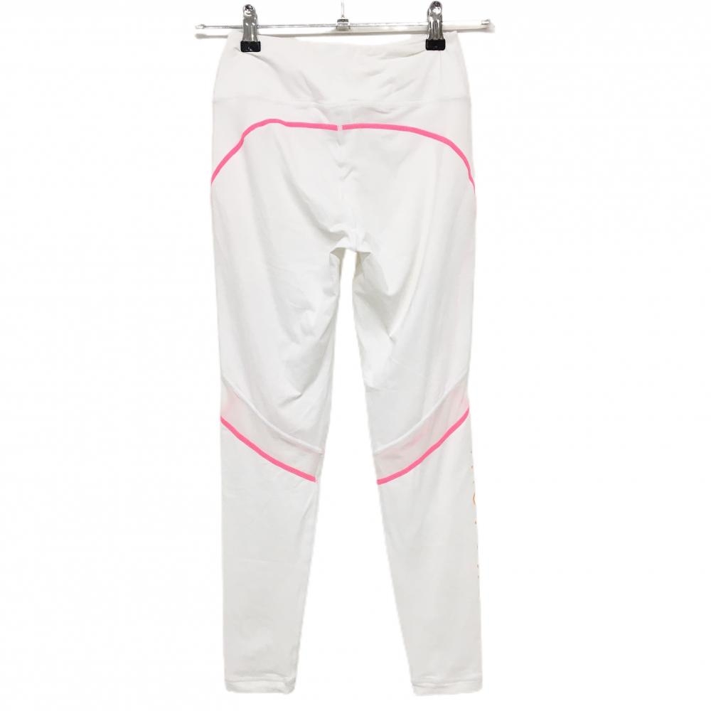 【超美品】マークアンドロナ レギンス 白×蛍光ピンク スパッツ 裾ロゴ レディース WS ゴルフウェア MARK&LONA