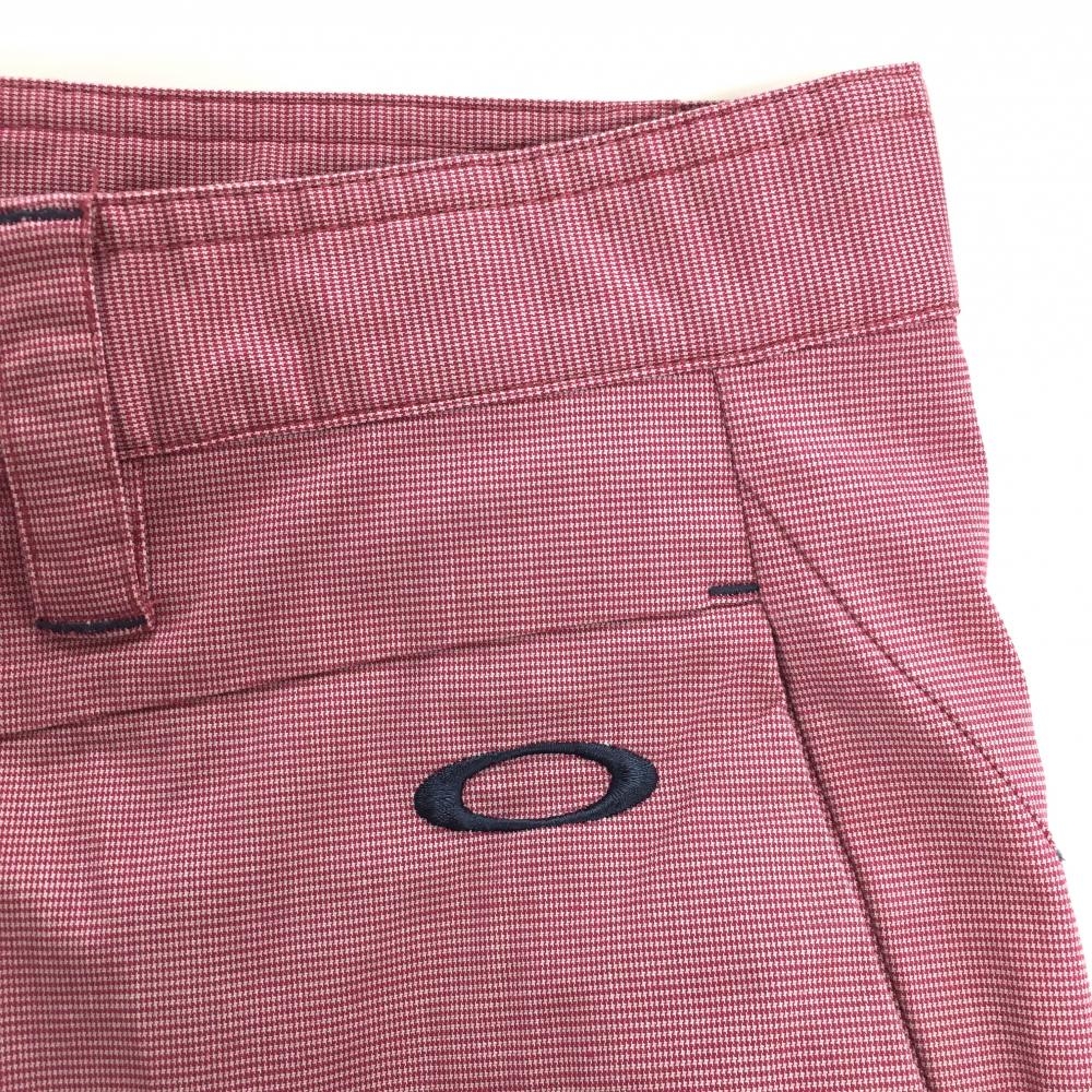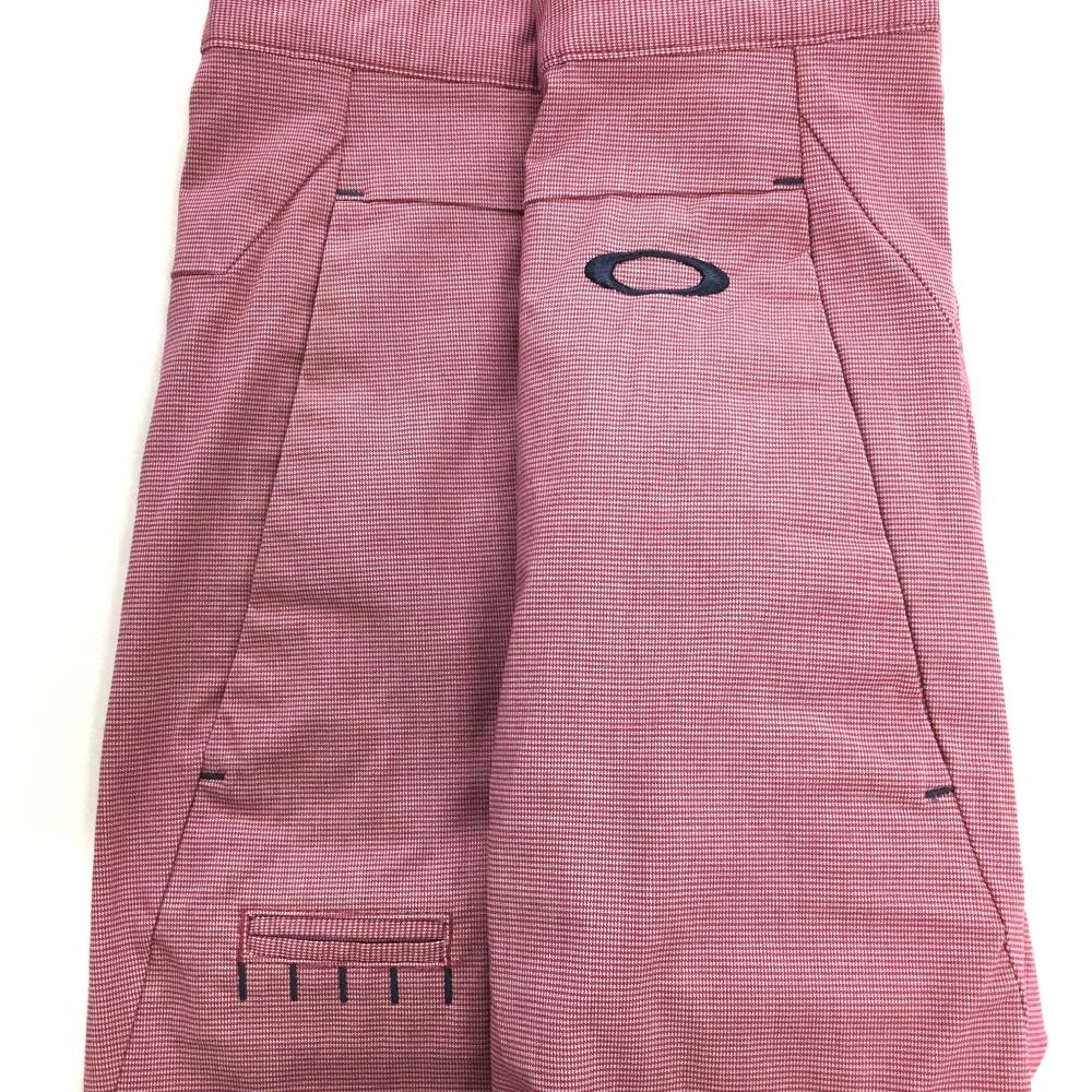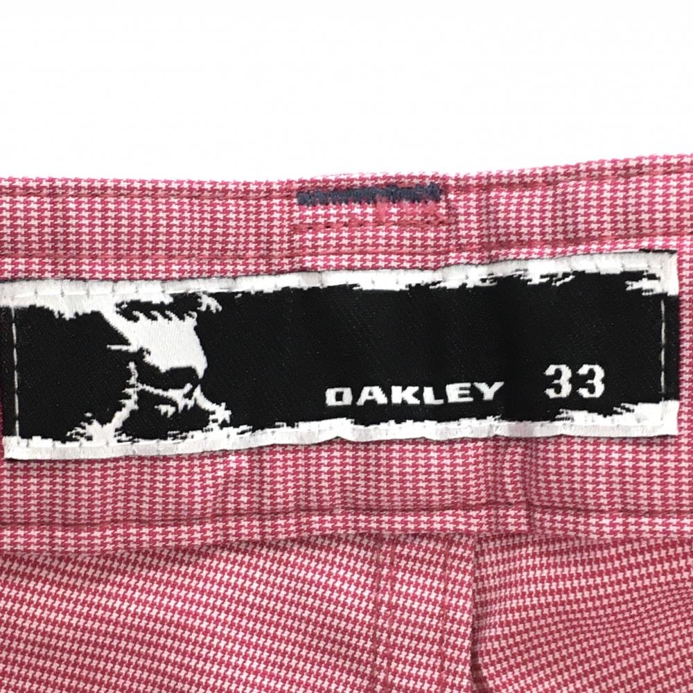 【美品】オークリー パンツ ピンク×白 細目千鳥格子 ストレッチ ティー装着可 メンズ 33 ゴルフウェア Oakley