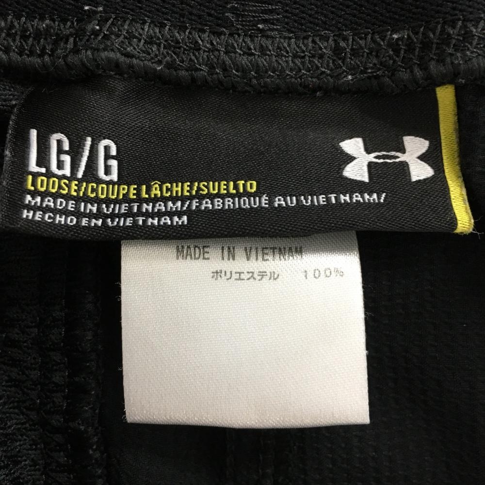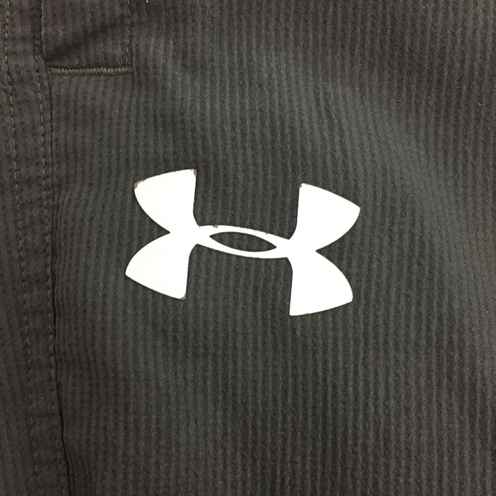 【美品】アンダーアーマー パンツ 黒 細ストライプ織生地 裾サイド切替 メンズ LG/G ゴルフウェア UNDER ARMOUR