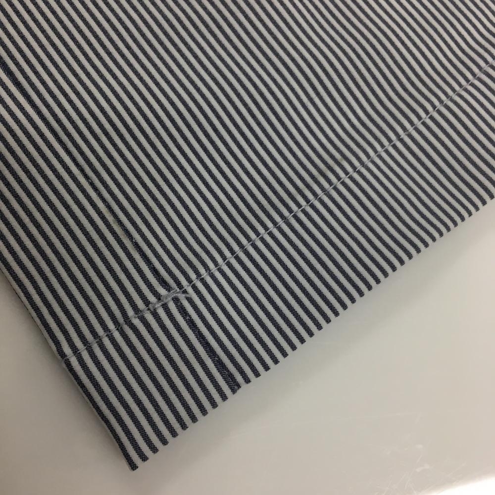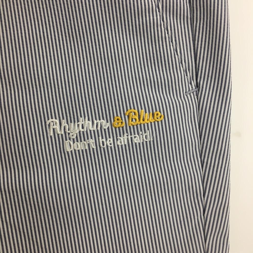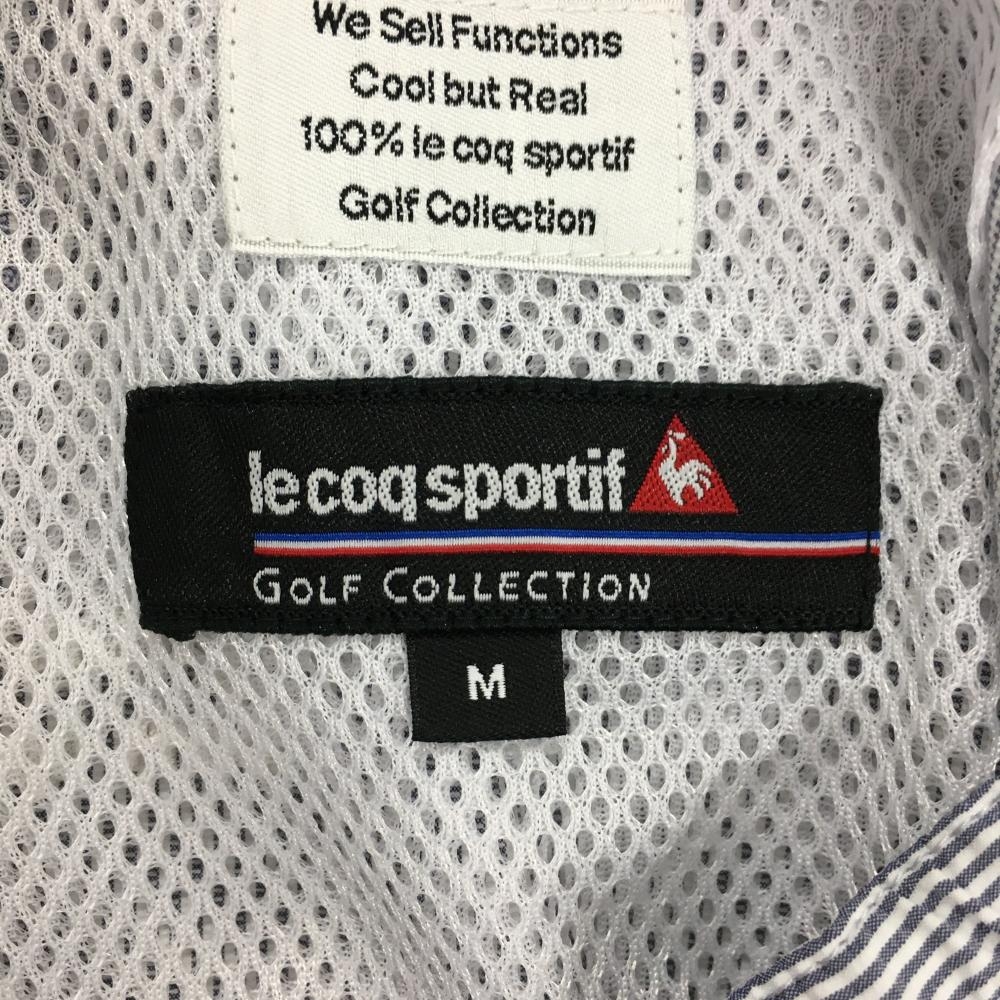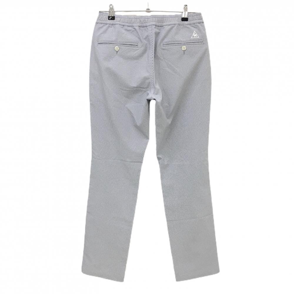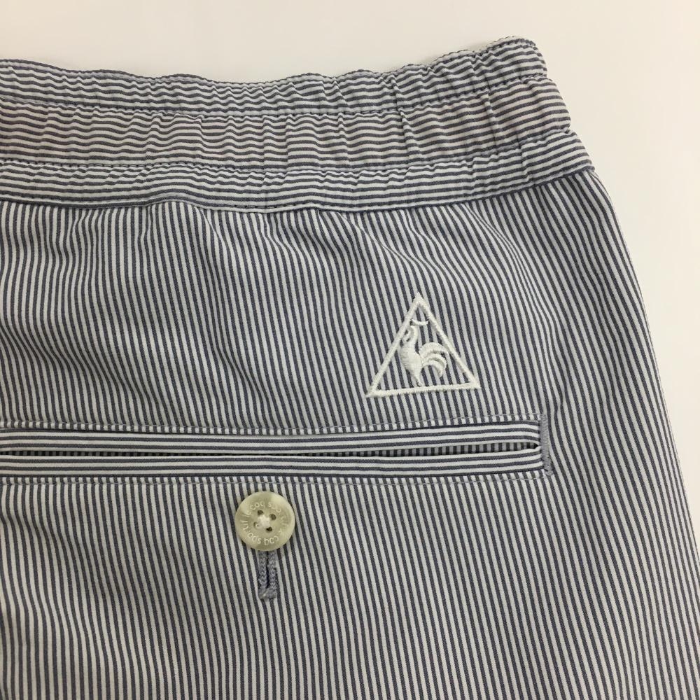 【美品】ルコックゴルフ パンツ ネイビー×白 細ストライプ ウエストゴム&調節紐 メンズ M ゴルフウェア le coq sportif