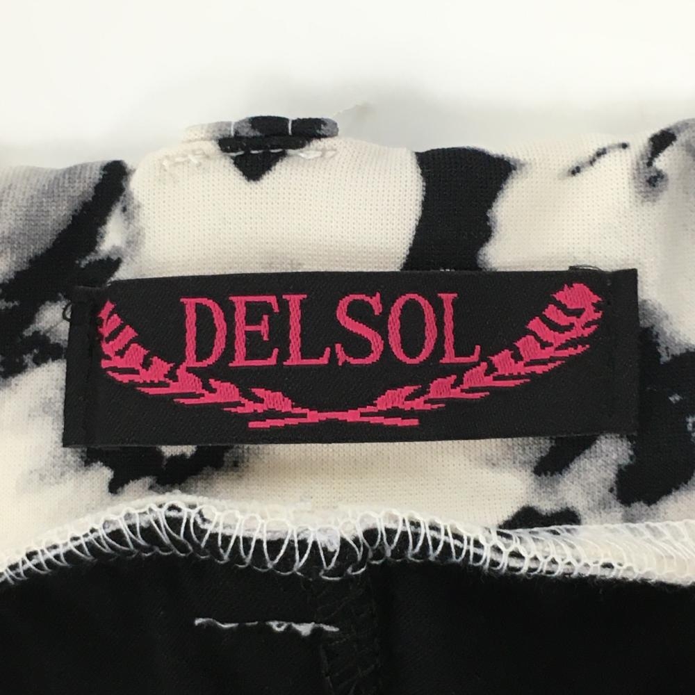【美品】デルソル ストレッチスカート 白×黒 花柄 ウエストゴム 内側インナーパンツ レディース M ゴルフウェア DELSOL