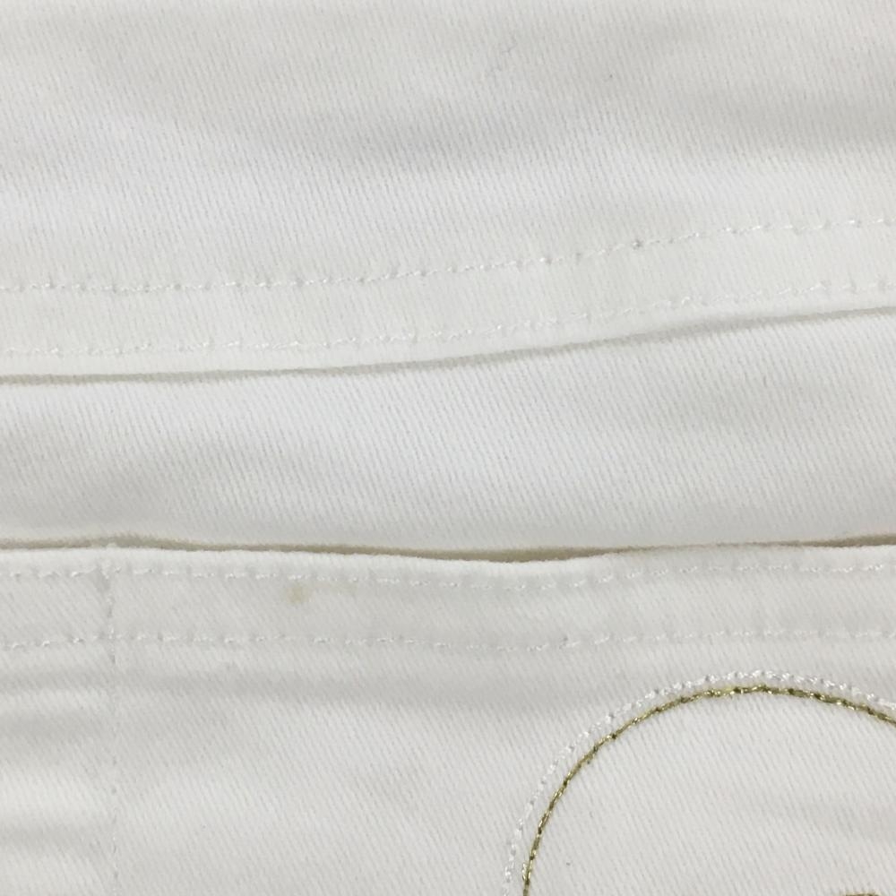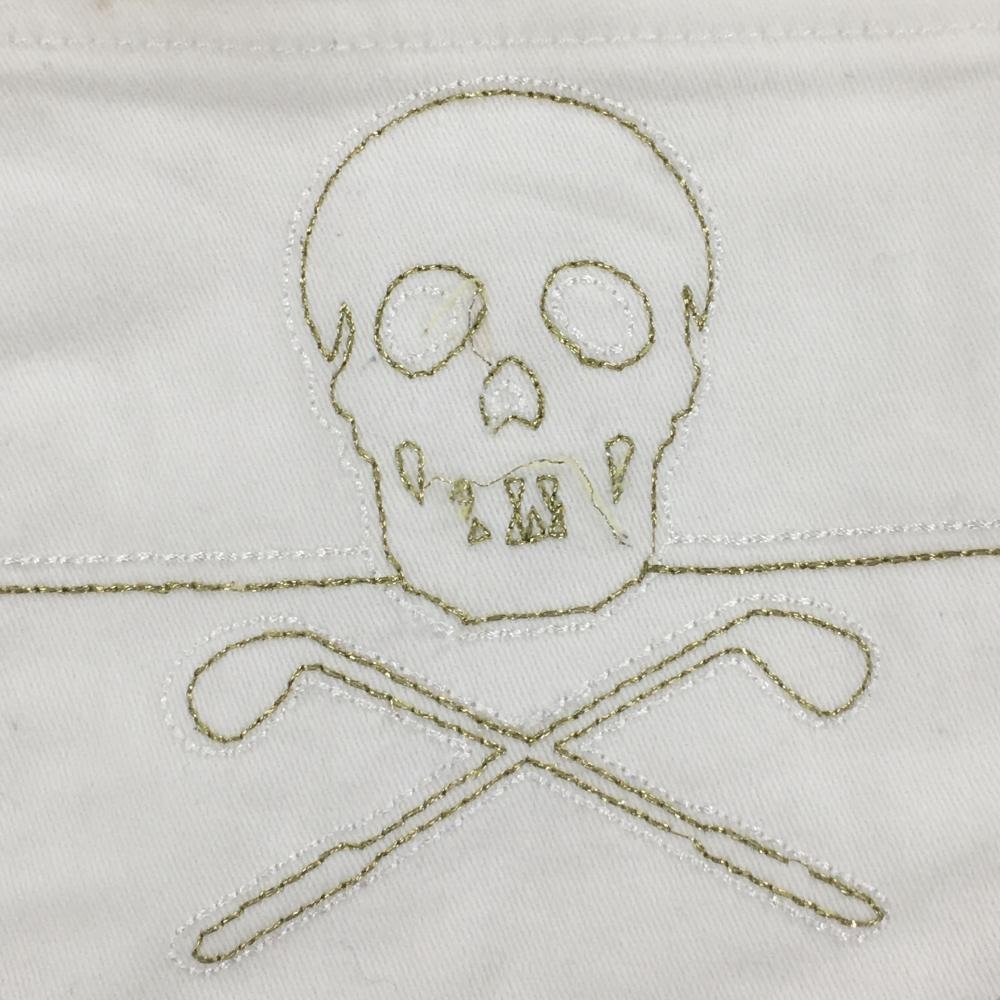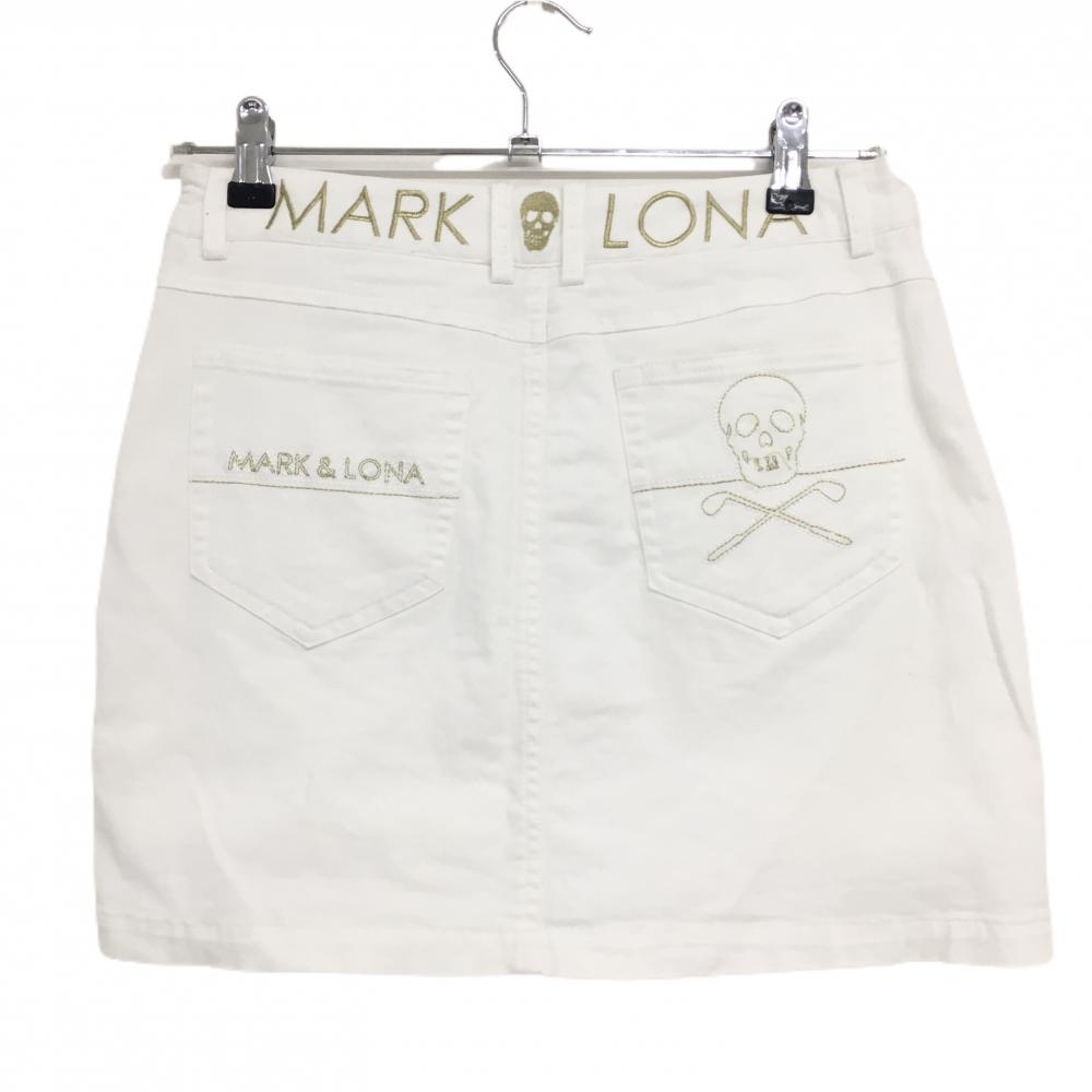 マークアンドロナ スカート 白×ゴールド 後ろスカル刺しゅう 内側インナーパンツ ストレッチ レディース M ゴルフウェア MARK&LONA