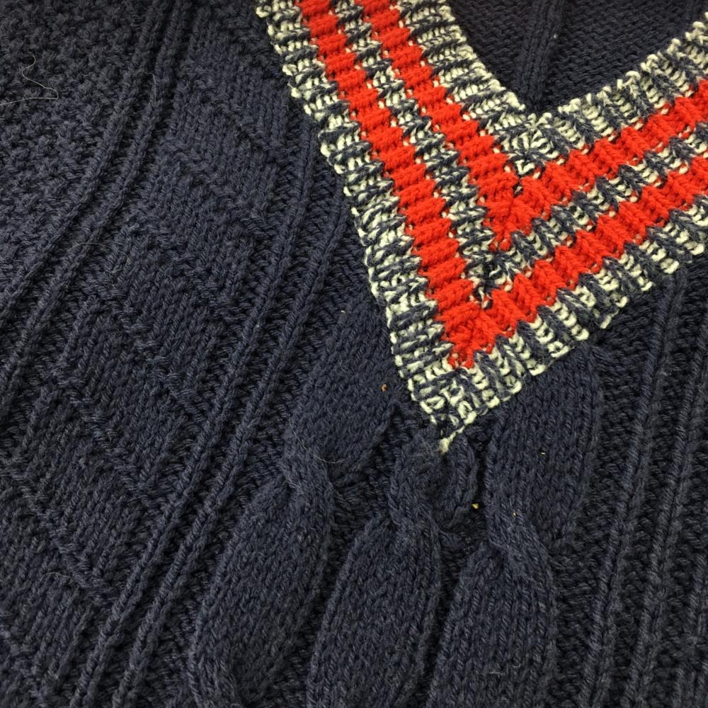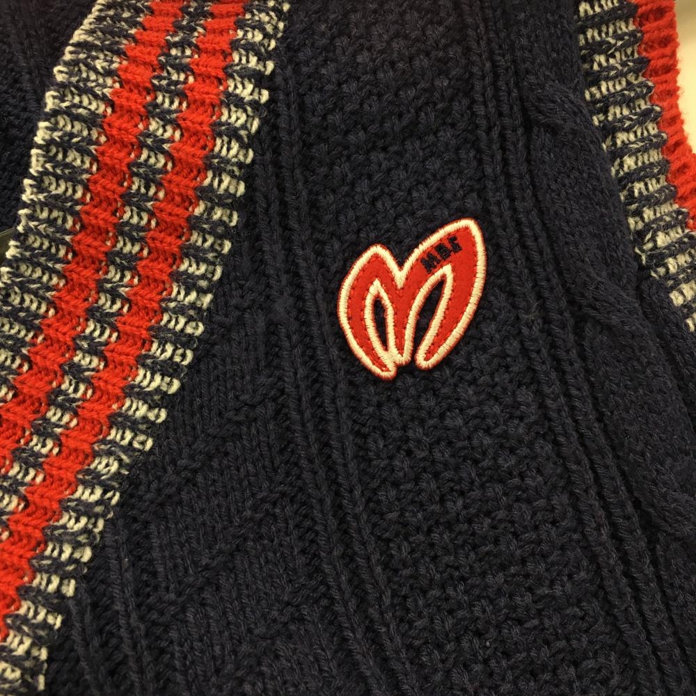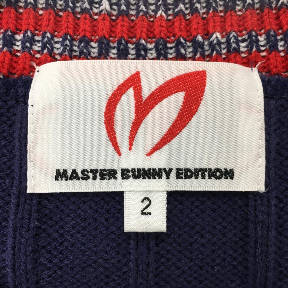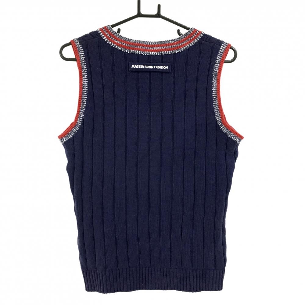 【美品】マスターバニー ニットベスト ネイビー×レッド 前面ケーブル編み レディース 2(L) ゴルフウェア MASTER BUNNY EDITION