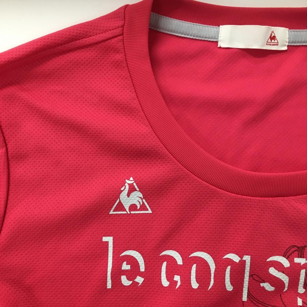 【超美品】ルコック 長袖Tシャツ ピンク 一部花柄 フロントロゴ レディース O ゴルフウェア le coq sportif