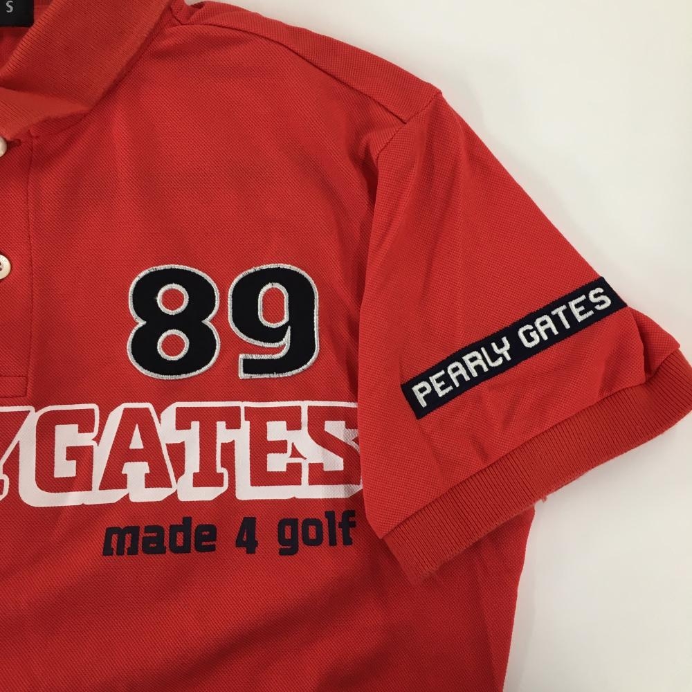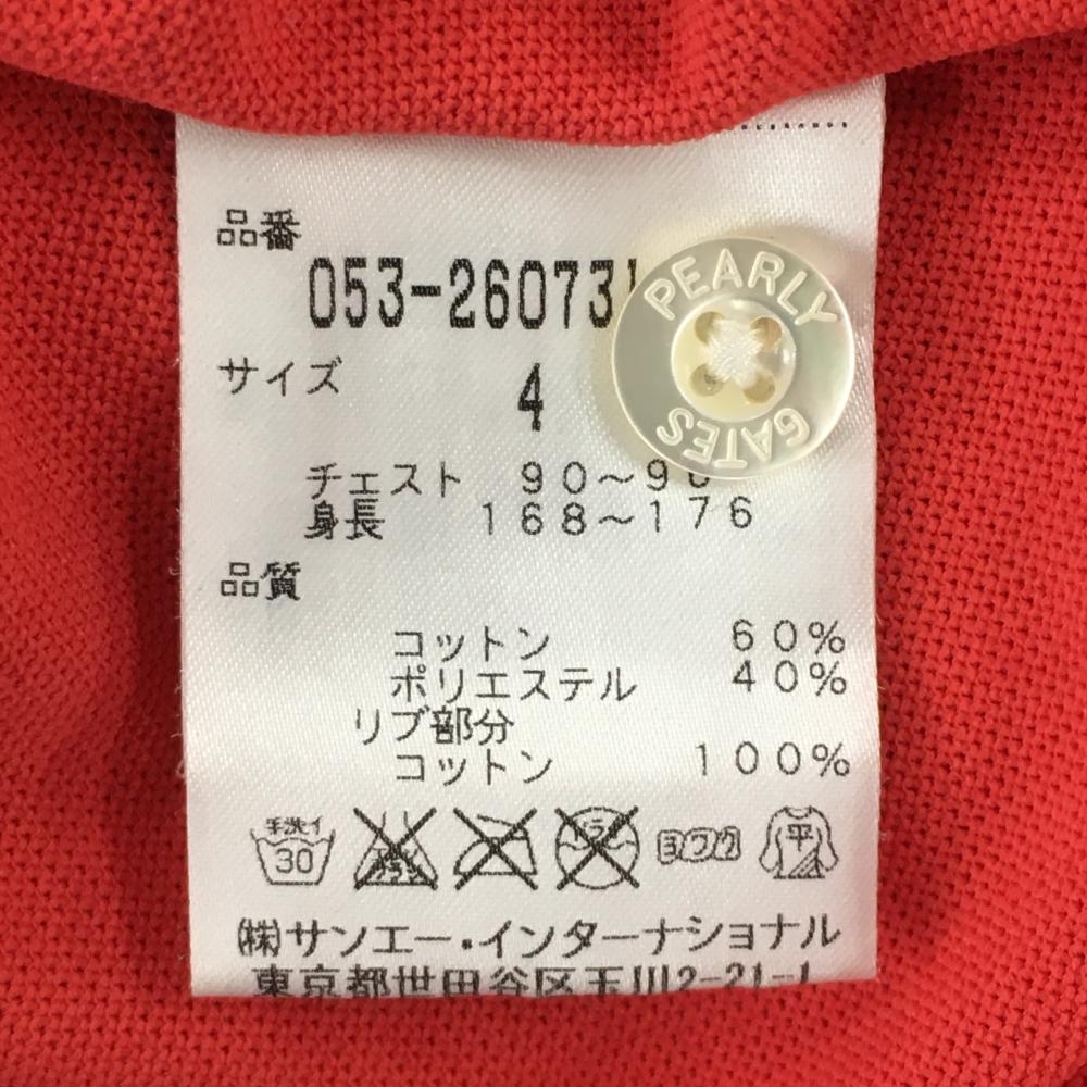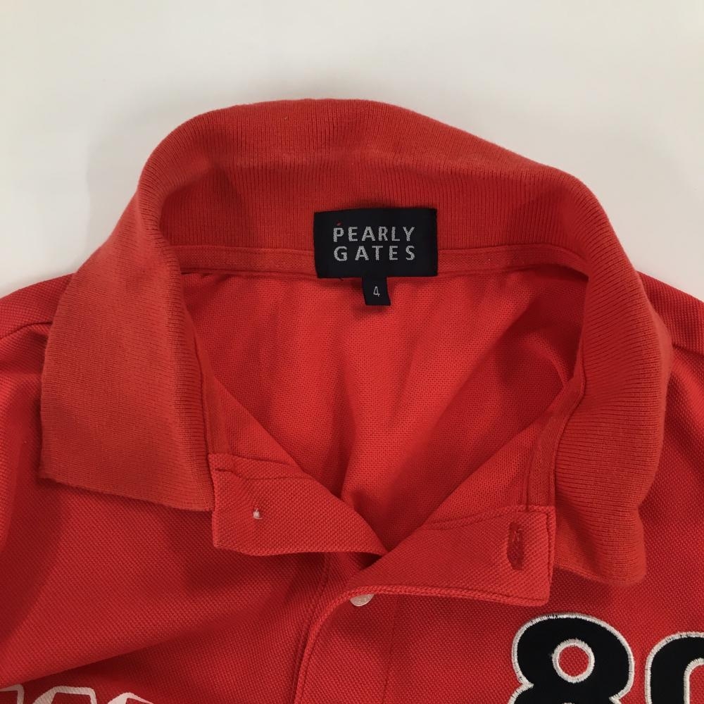 パーリーゲイツ 半袖ポロシャツ レッド×白 胸元ロゴ メンズ 4(M) ゴルフウェア PEARLY GATES