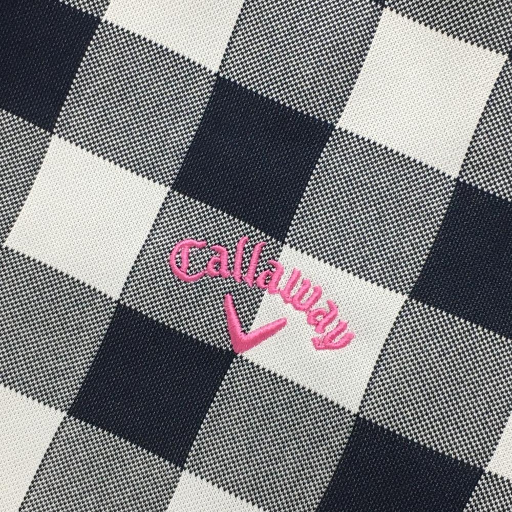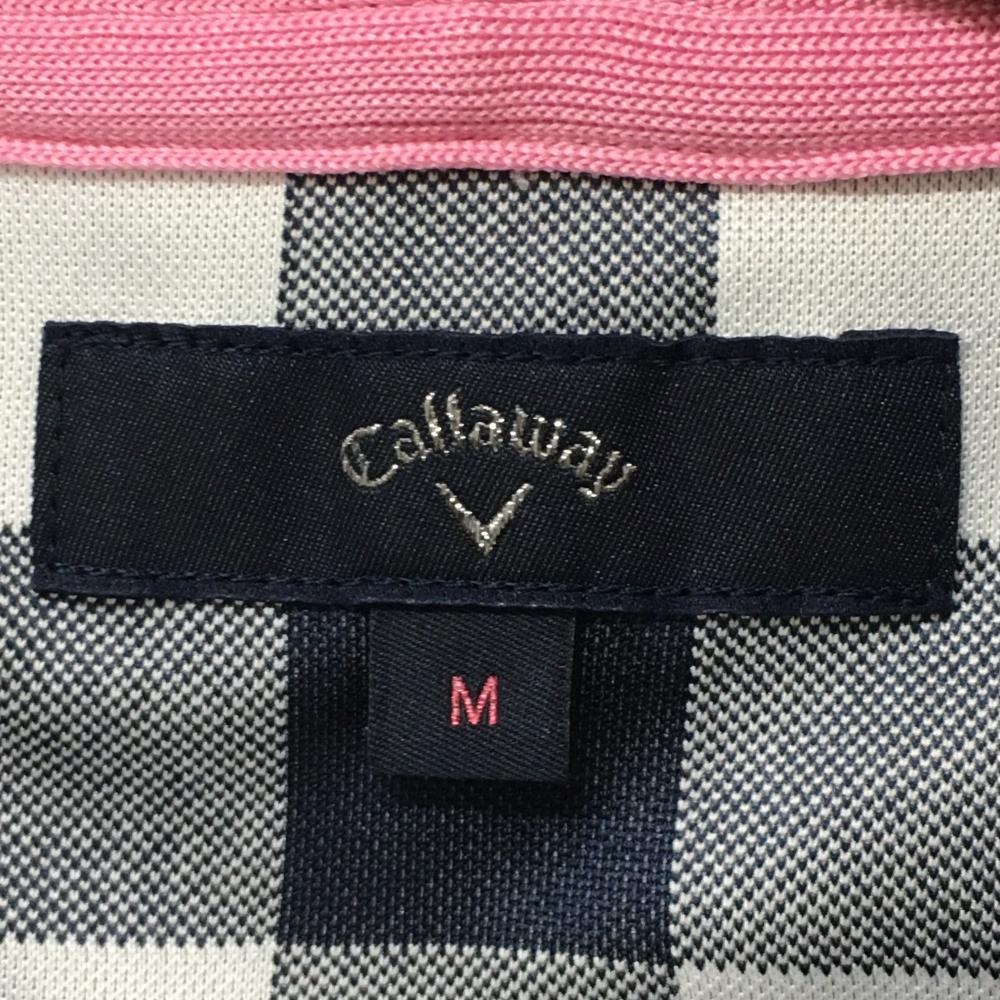 【超美品】キャロウェイ ジップパーカー ネイビー×白 ギンガムチェック ロゴ刺しゅう レディース M ゴルフウェア Callaway