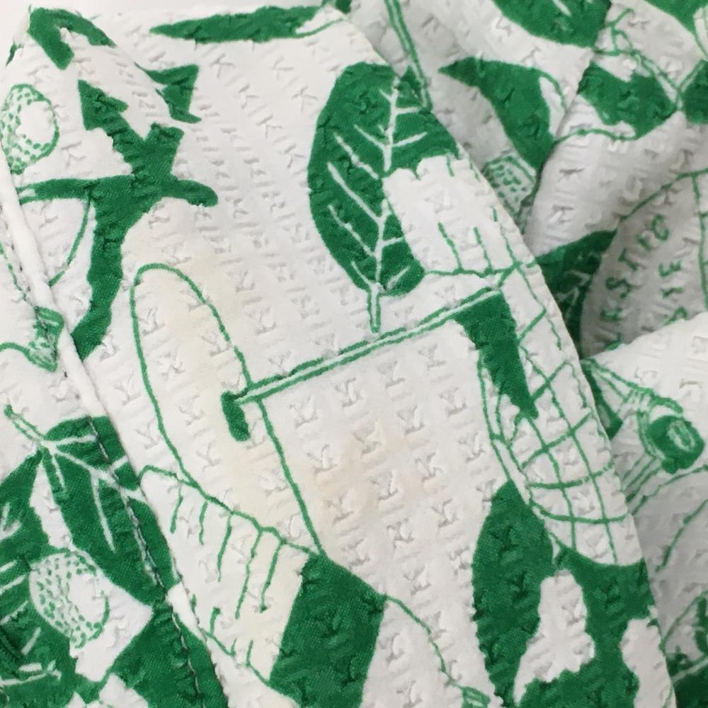 アディダス 半袖ポロシャツ 白×グリーン 総柄 サッカー生地 レディース M ゴルフウェア adidas