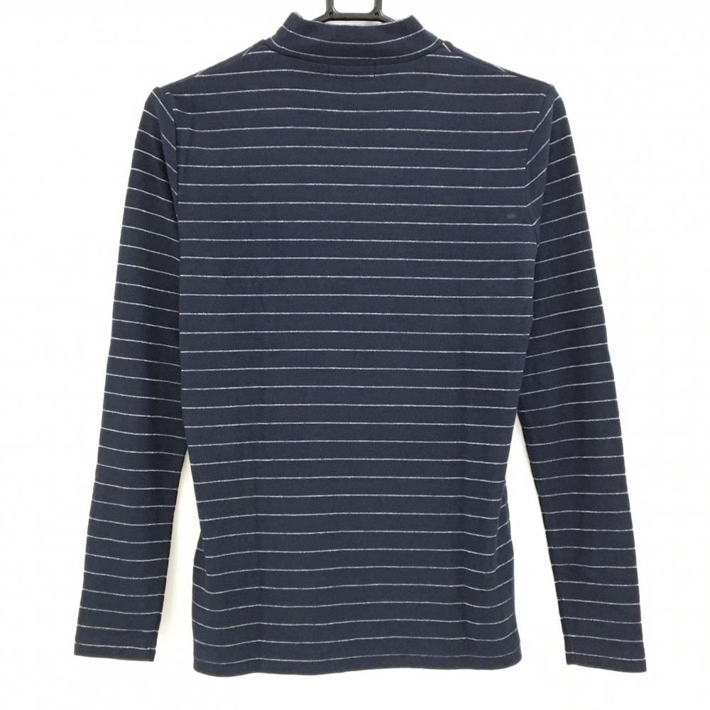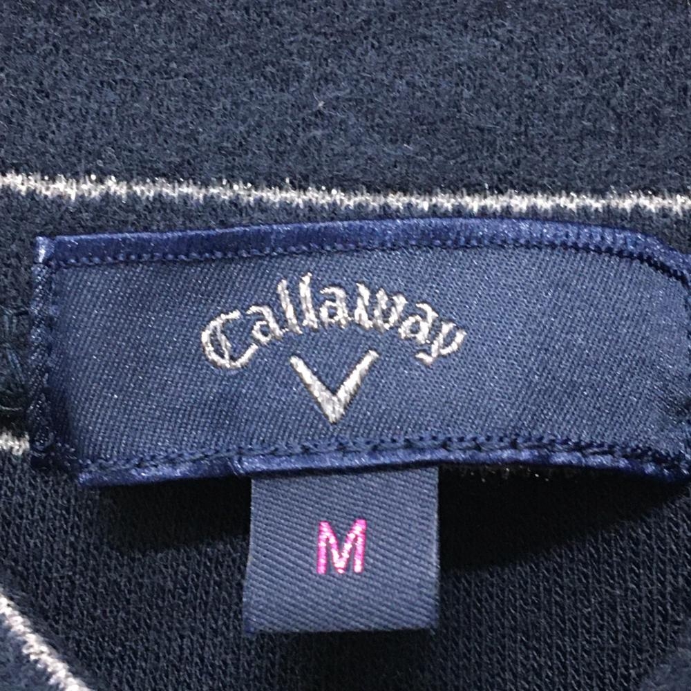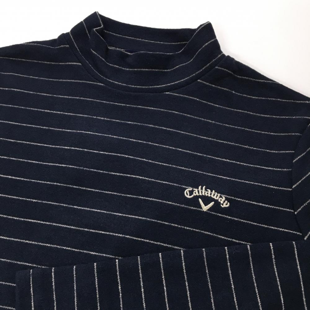 【超美品】キャロウェイ 長袖ハイネックシャツ ネイビー×シルバー ボーダー 微起毛 レディース M ゴルフウェア 2024年モデル Callaway