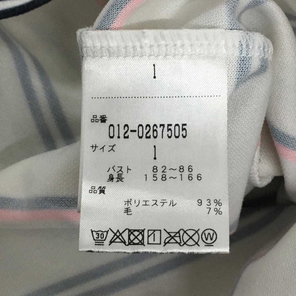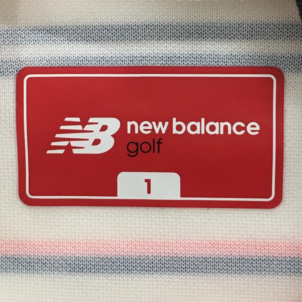 【美品】ニューバランスゴルフ 長袖ハイネックシャツ 白×ネイビー×オレンジ ボーダー レディース 1(M) ゴルフウェア New Balance