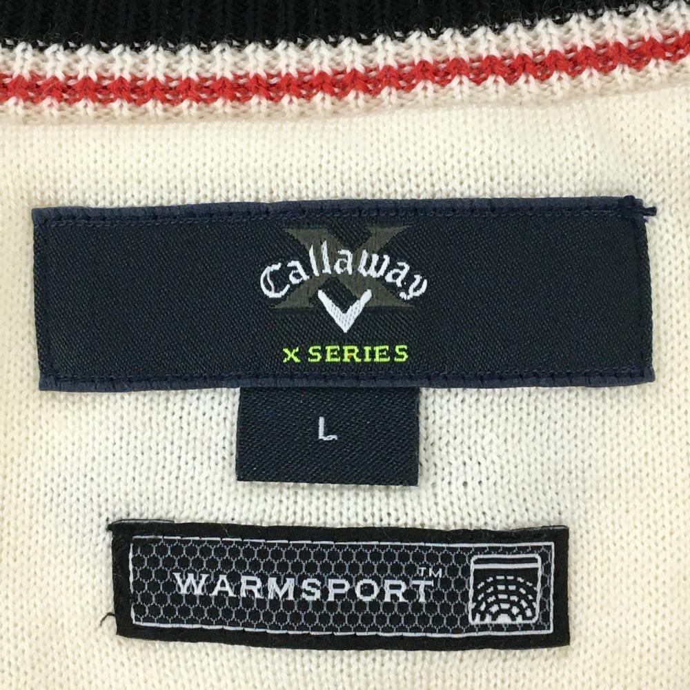 【超美品】キャロウェイ ニットベスト アイボリー×黒×レッド ウール混 30周年 WARMSPORT Vネック メンズ L ゴルフウェア Callaway