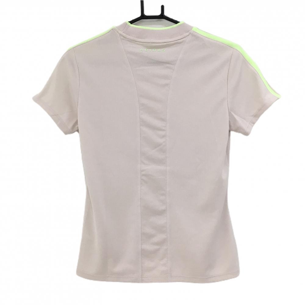 【美品】アディダス 半袖ハイネックシャツ ライトベージュ×蛍光グリーン レディース M ゴルフウェア 2023年モデル adidas