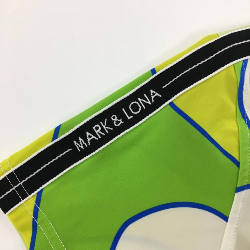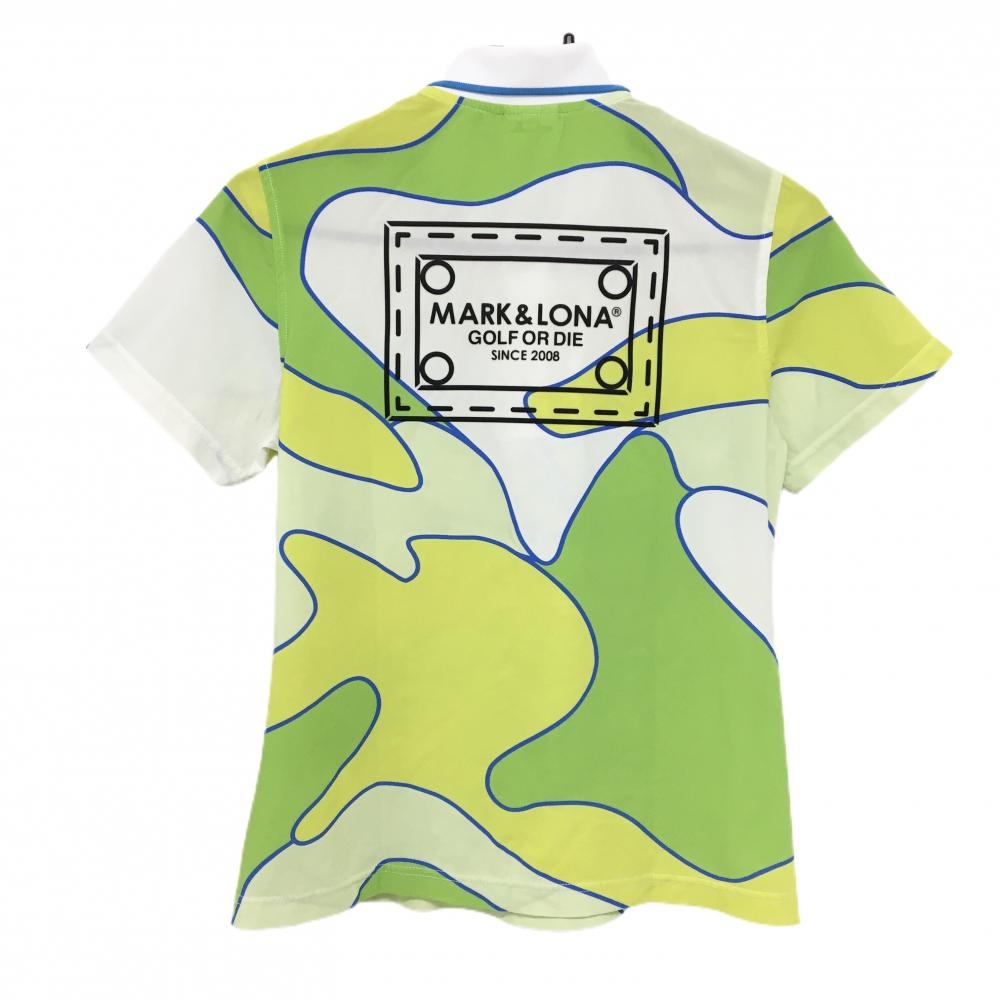 【超美品】マークアンドロナ 半袖ポロシャツ 白×グリーン 総柄 スカル レディース 38(M) ゴルフウェア 2024年モデル MARK&LONA