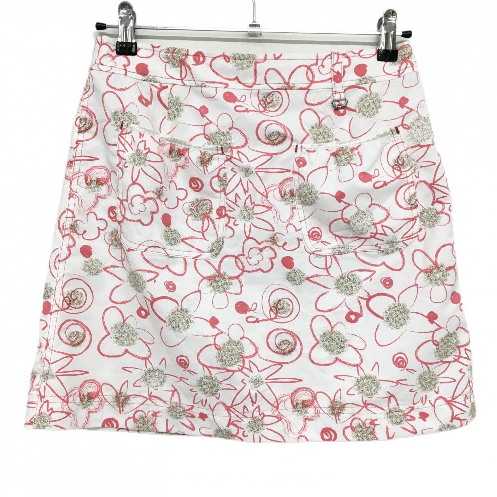 【超美品】ヒールクリーク ラップスカート 白×ピンク 花柄 レディース 40(M) ゴルフウェア Heal Creek