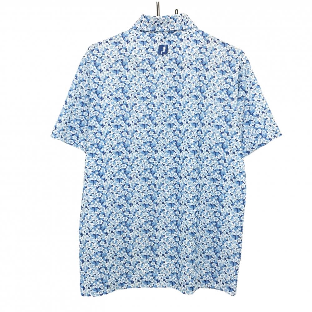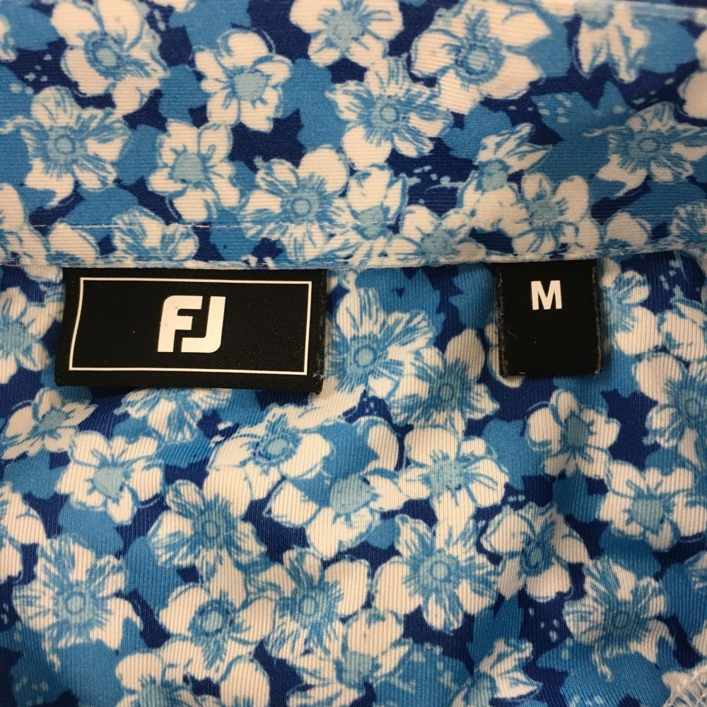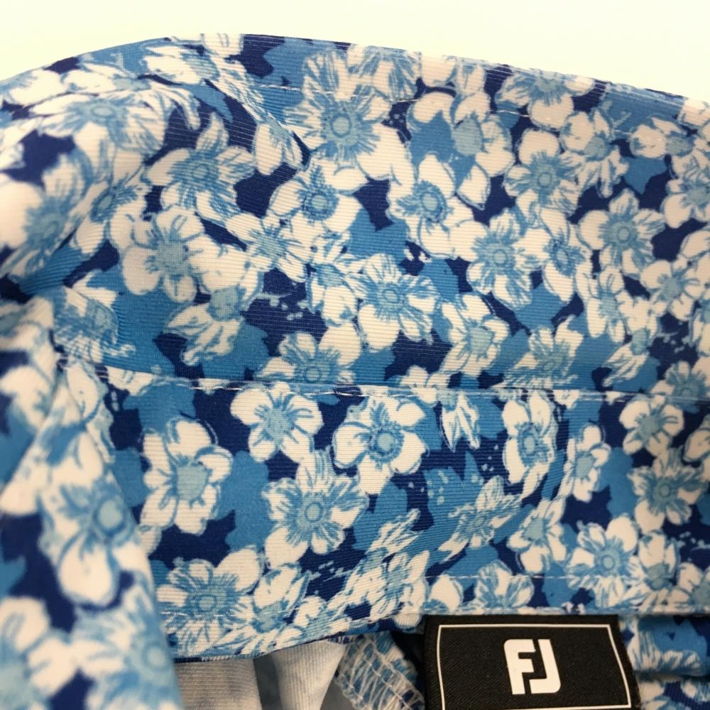 【美品】フットジョイ 半袖ポロシャツ ライトブルー×ネイビー 花柄 ボタンダウン メンズ M ゴルフウェア 2024年モデル FootJoy
