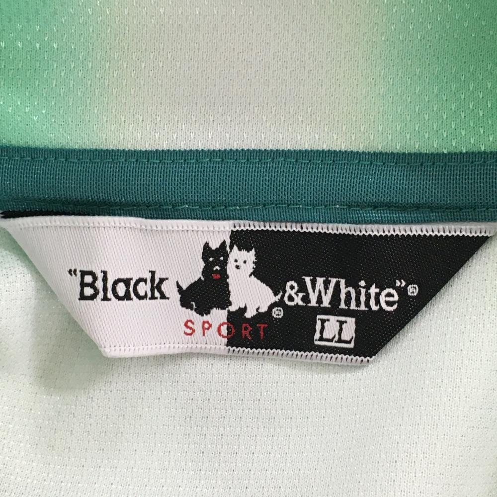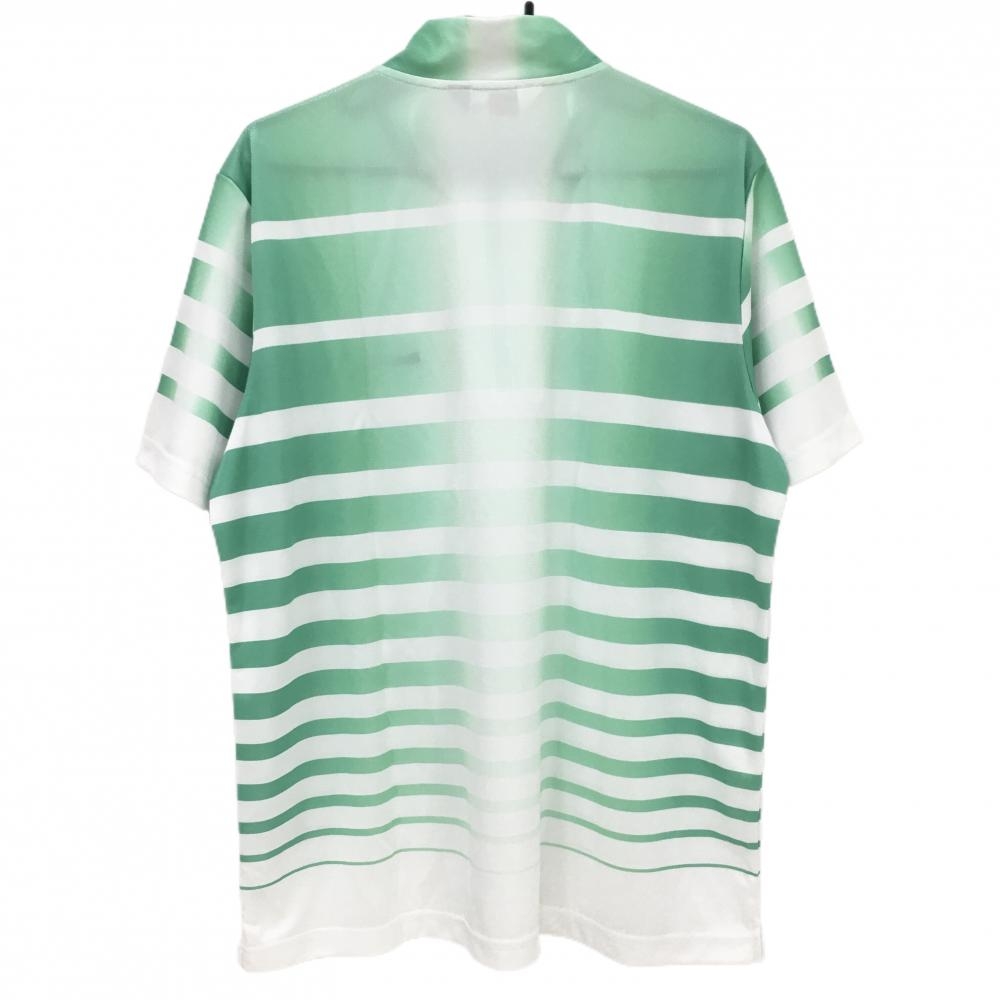 【超美品】ブラックアンドホワイト 半袖ハイネックシャツ グリーン×白 ボーダー グラデーション メンズ LL ゴルフウェア Black&White