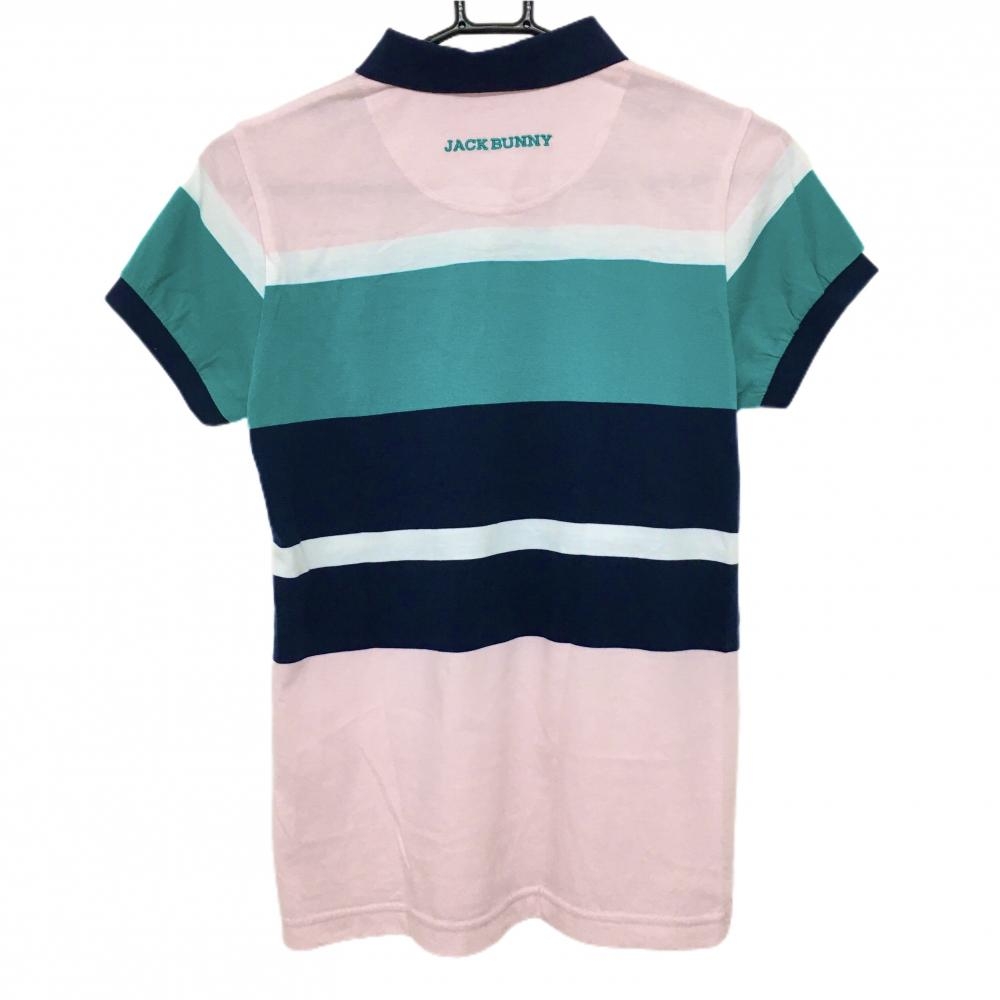 ジャックバニー 半袖ポロシャツ ネイビー×グリーン×ピンク ボーダー風 レディース 2(L) ゴルフウェア Jack Bunny