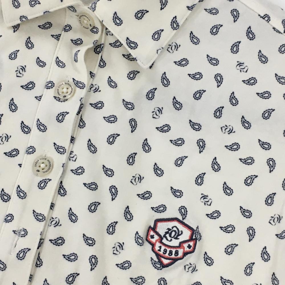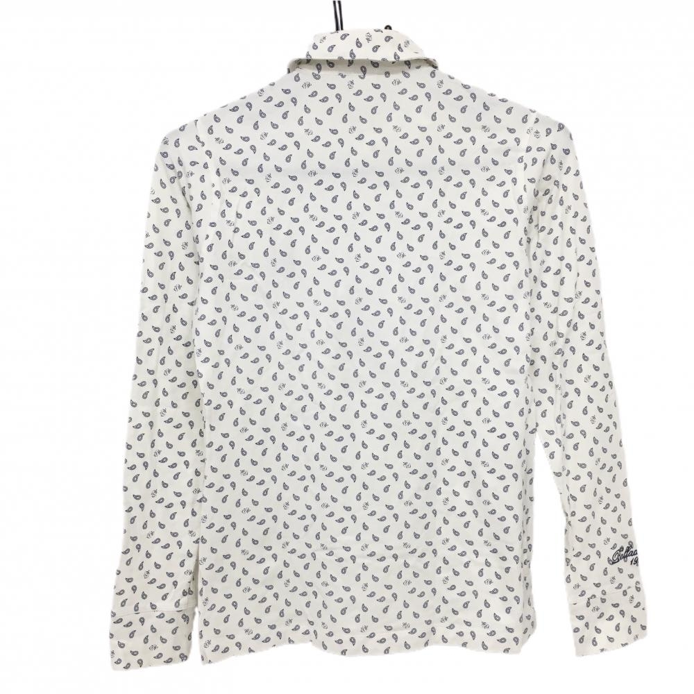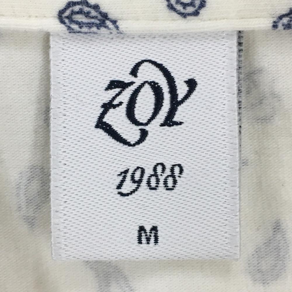 【美品】ゾーイ 長袖ポロシャツ 白×ネイビー 総柄 レディース M ゴルフウェア ZOY
