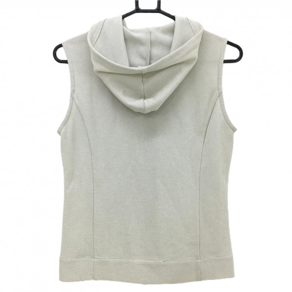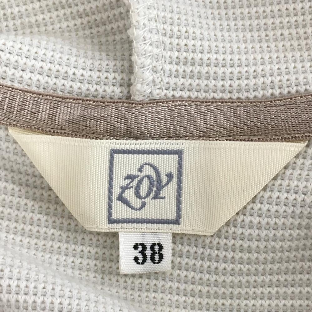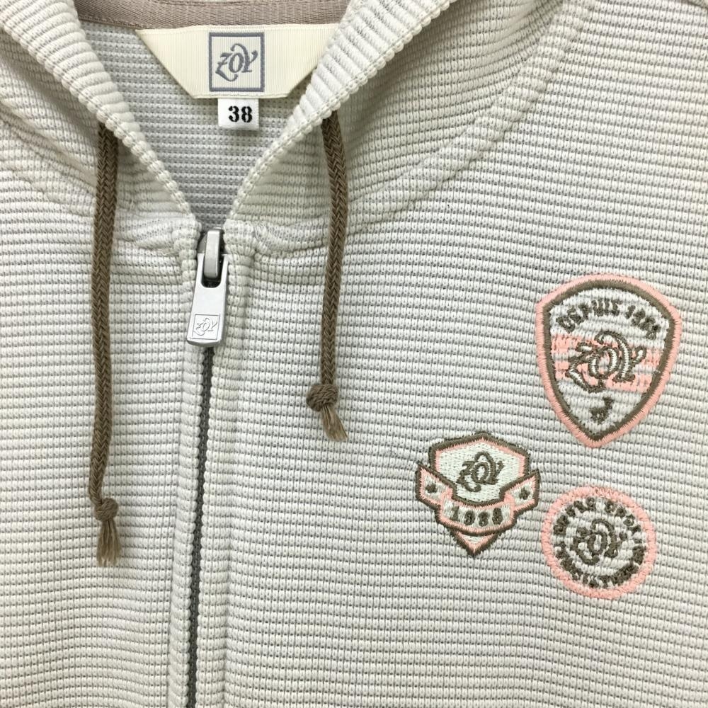 【超美品】ゾーイ ジップベスト ベージュ系 織生地 フード付き 胸ロゴ レディース 38(M) ゴルフウェア ZOY