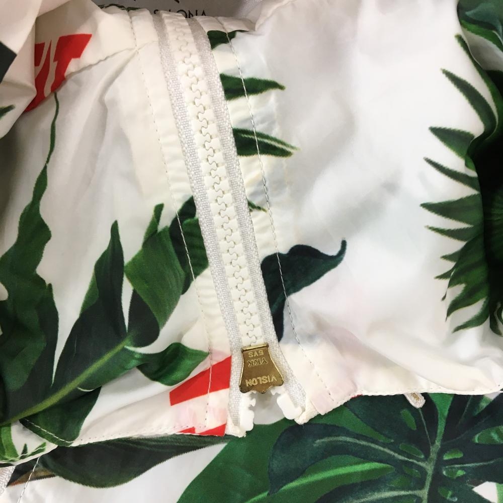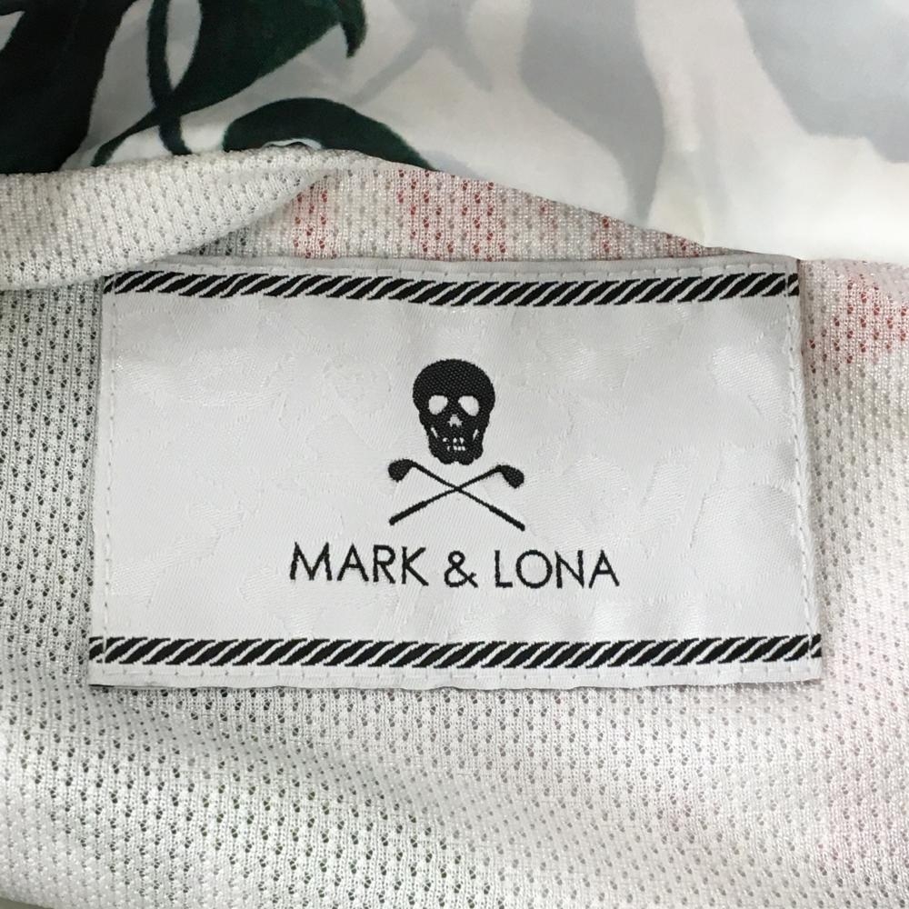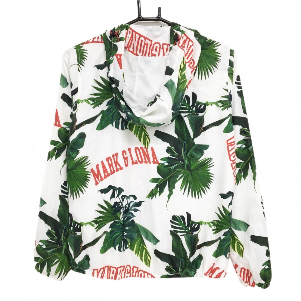 【美品】マークアンドロナ ジップパーカー 白×グリーン リーフ柄 裏地メッシュ レディース M ゴルフウェア MARK&LONA