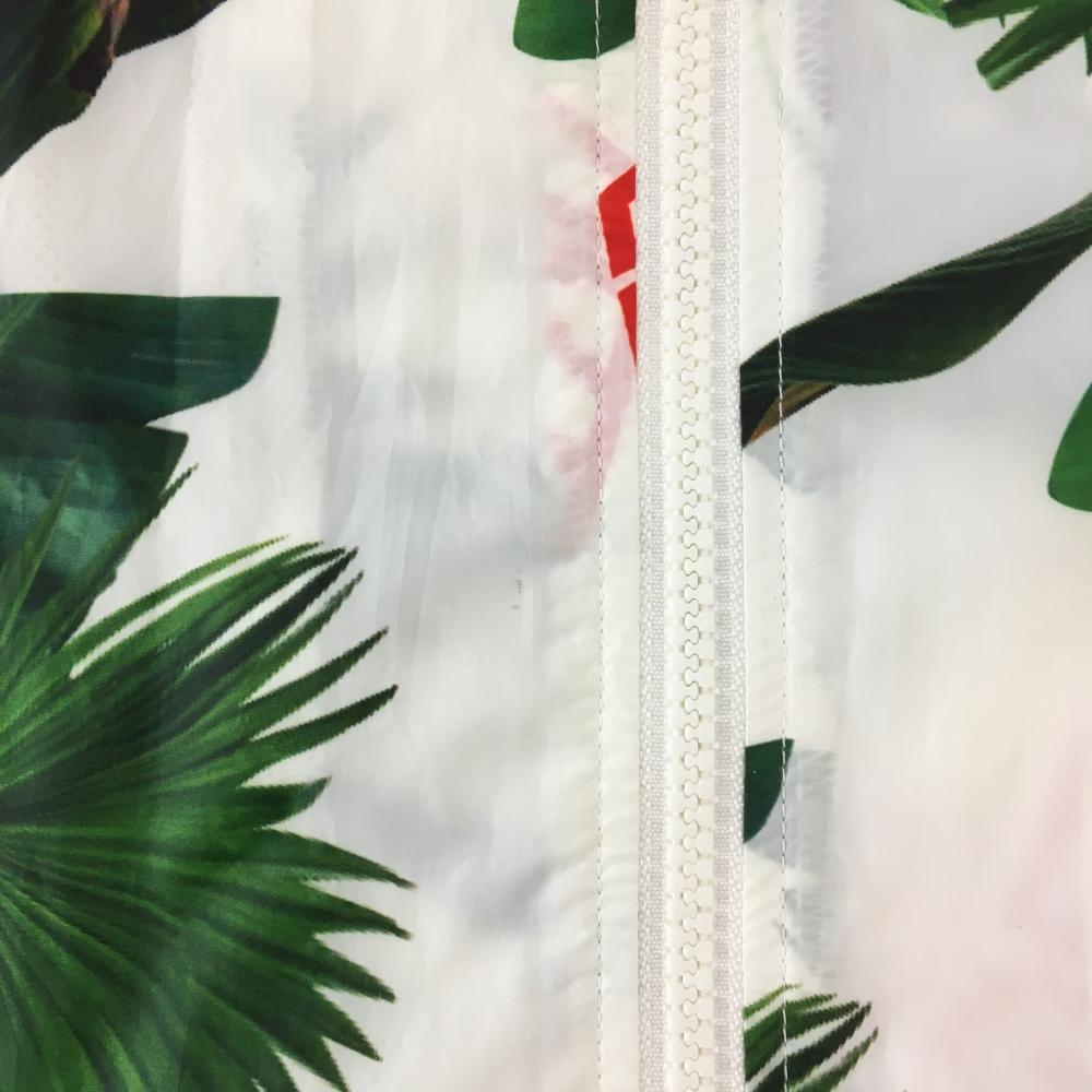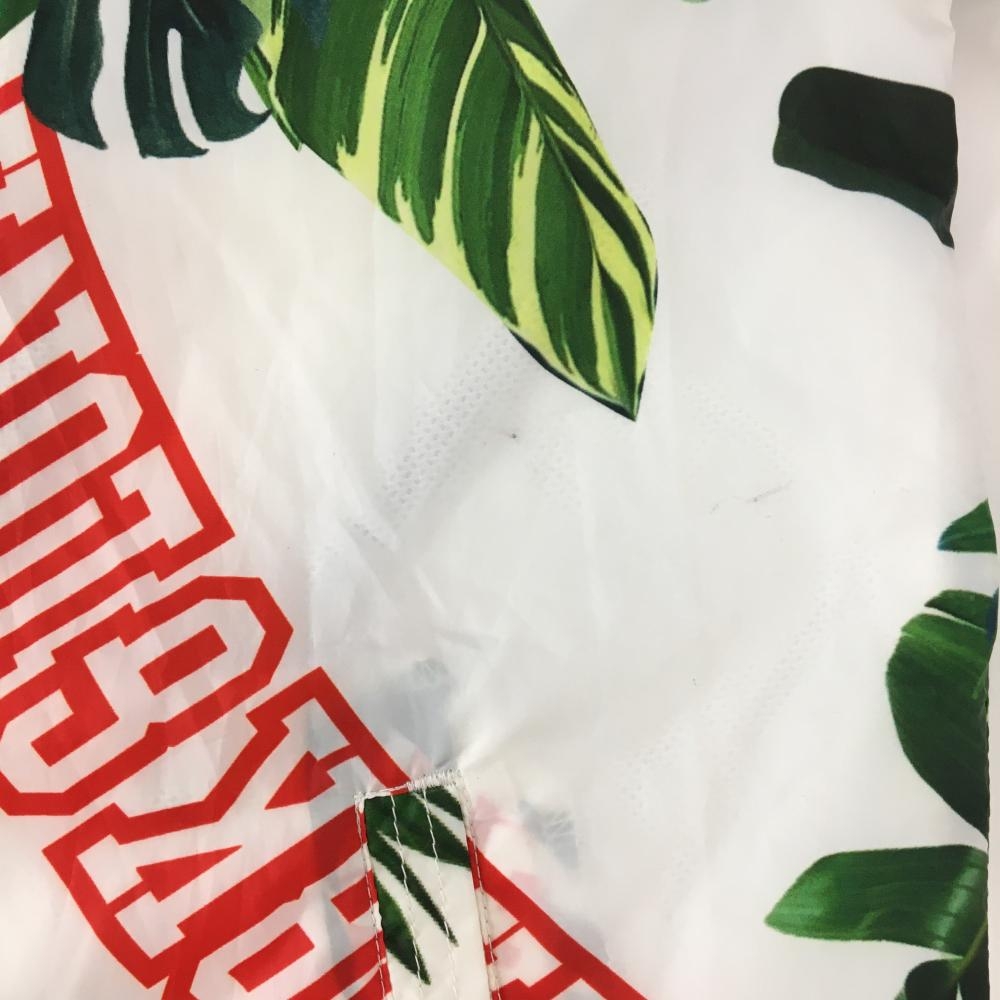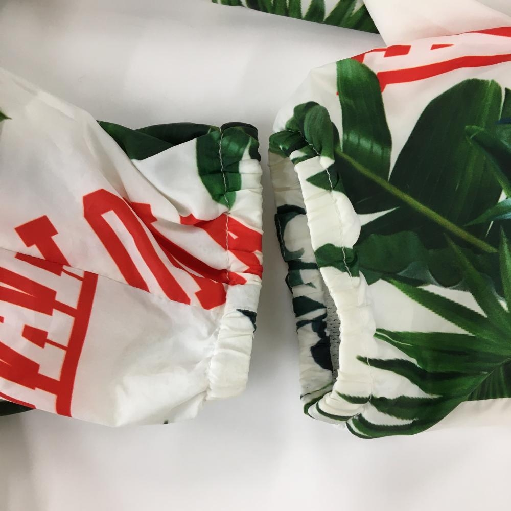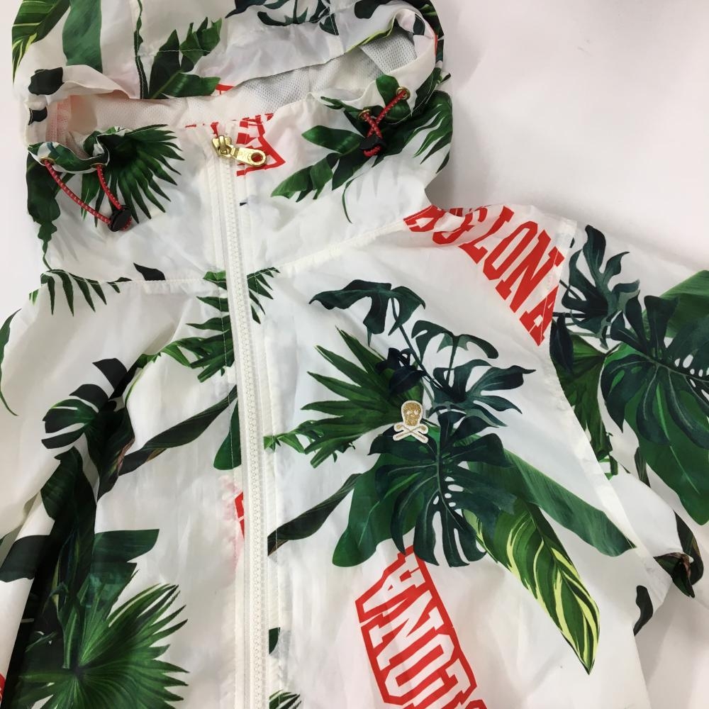 【美品】マークアンドロナ ジップパーカー 白×グリーン リーフ柄 裏地メッシュ レディース M ゴルフウェア MARK&LONA